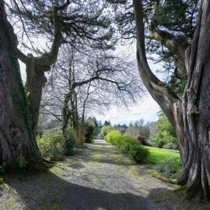 Garden Entering through a gated driveway and old stone walls from the Rochestown Road, you immediately get a sense of the space on offer. The property is set on a most private site of approx. 1.8 acres and a long winding driveway leads you through the garden, showcasing the fantastic space on offer along with the vast selection of mature trees, plants, shrubs and lawns. There are patio areas to the front and rear of the house, ideal for outdoor dining during the summer months. The rear of the property faces south and has a large lawned area lined with mature trees, a block built shed and a greenhouse.