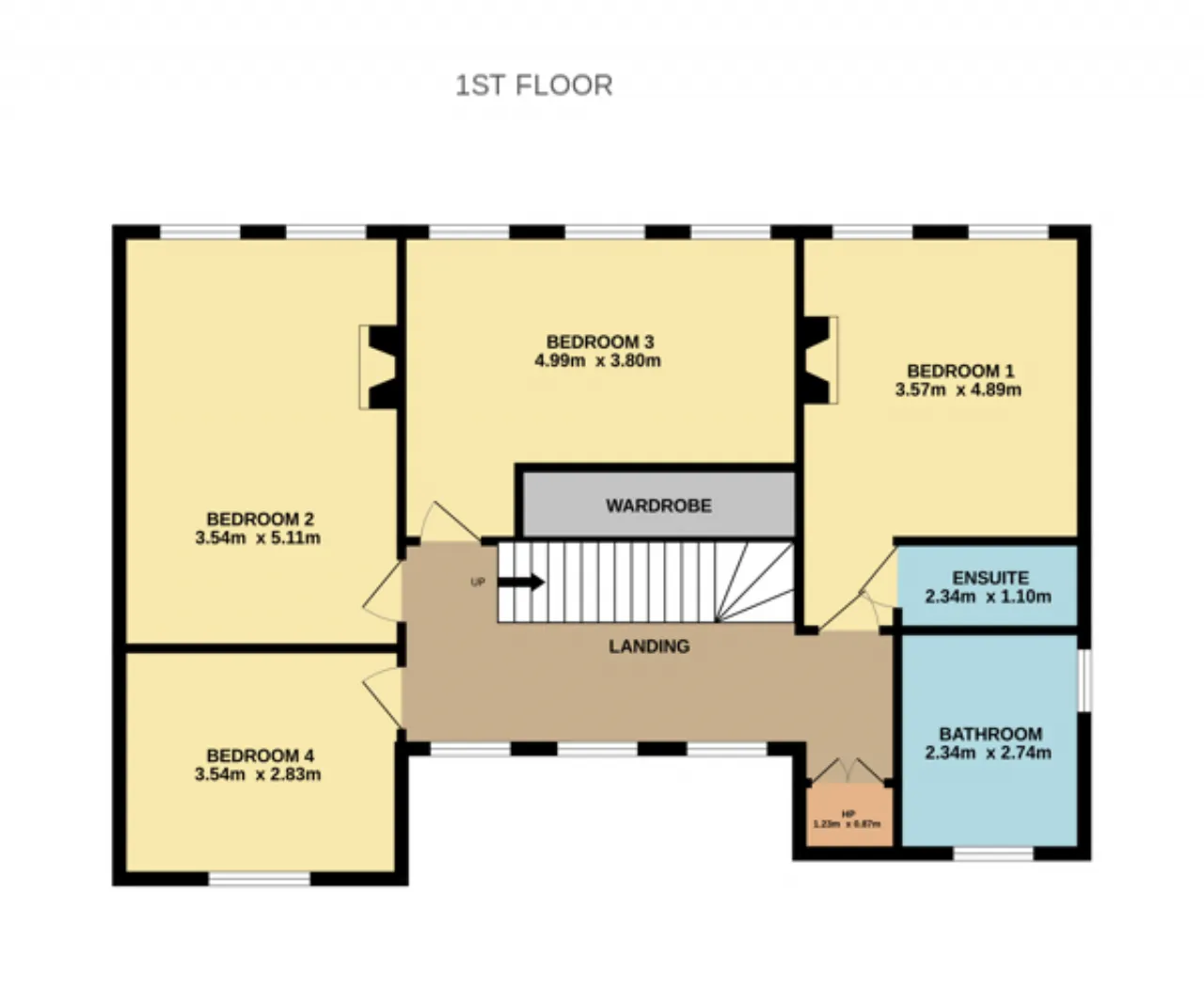 Bedroom 3 4.98 x 3.74 Double bedroom with three sash windows overlooking the rear garden, carpet flooring, picture rails and fitted wardrobes offering ample storage space.