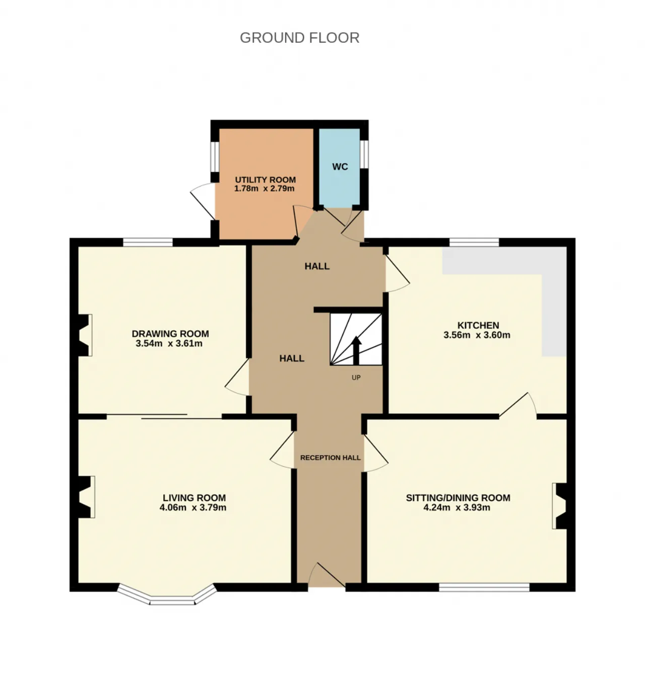 Stepping inside, you’re greeted by a bright hallway. This leads to an inner hall with a curved staircase.
