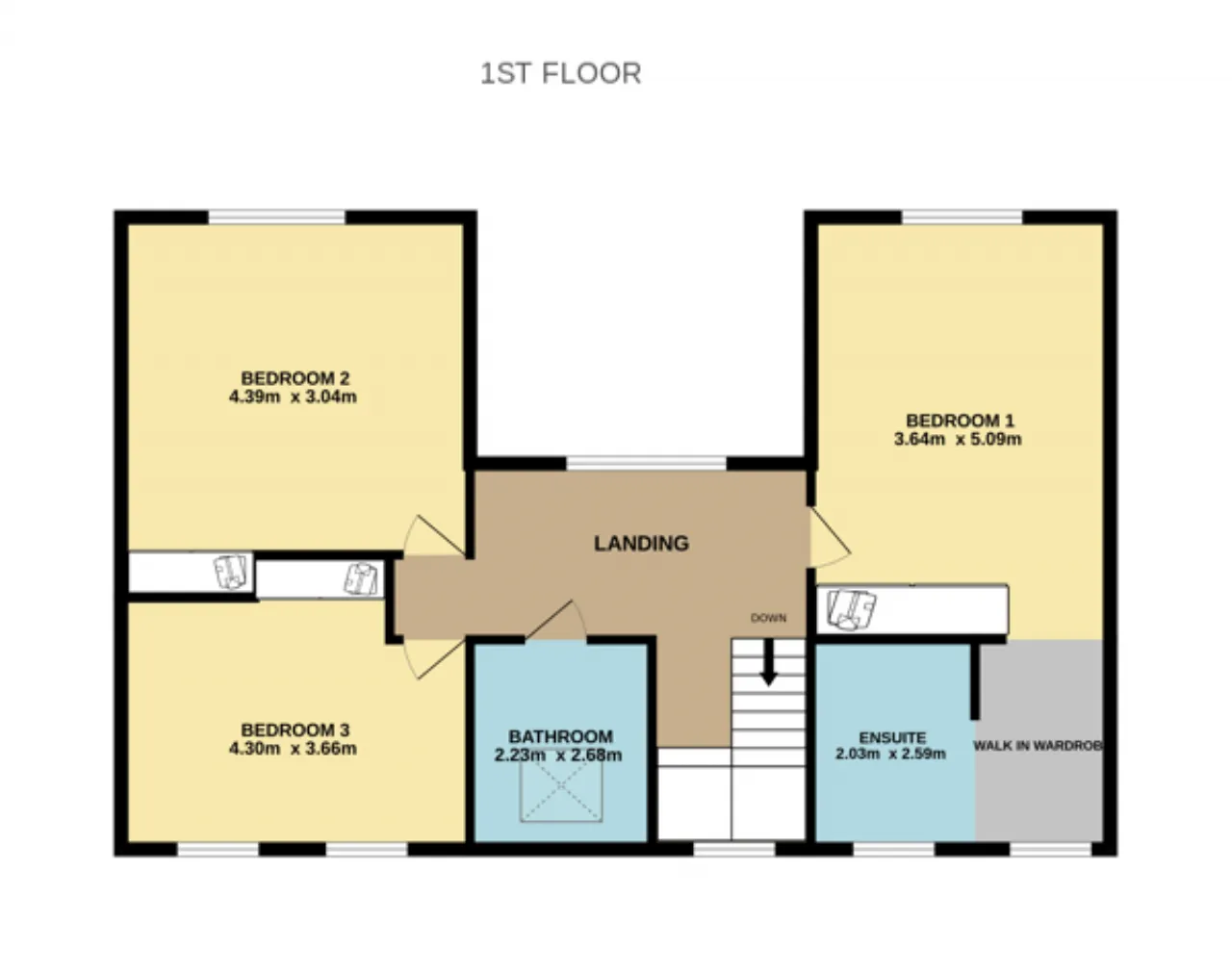 Landing This bright and spacious landing area provides access to all rooms on the first floor. The large south facing window at the top allows natural light to fill through to the downstairs hallway.