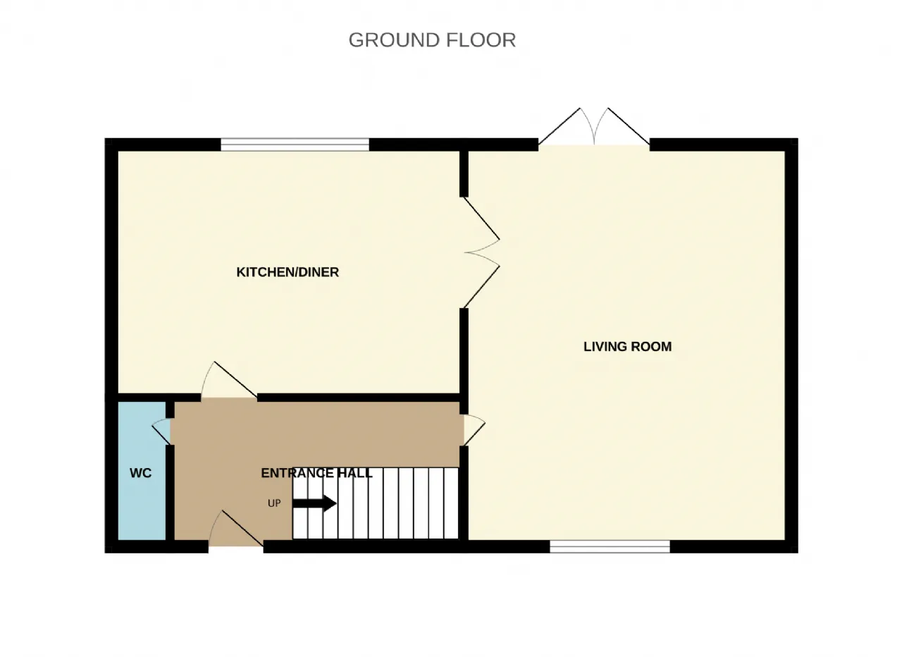 Living Room 5.40 x 4.40 Laminate flooring Fireplace with insert stove Fitted blinds