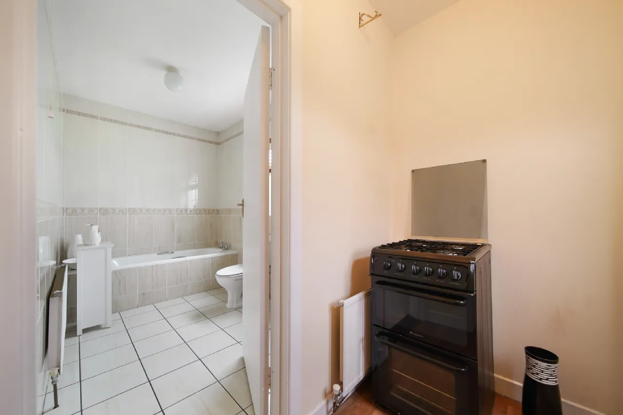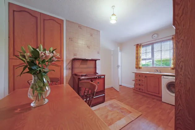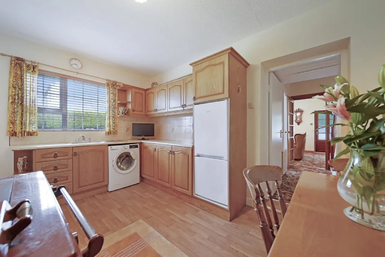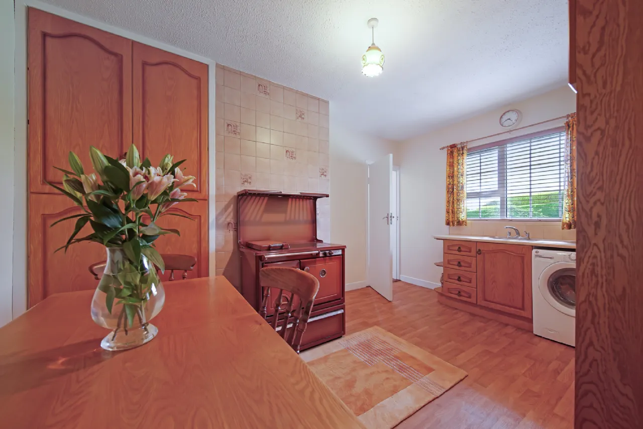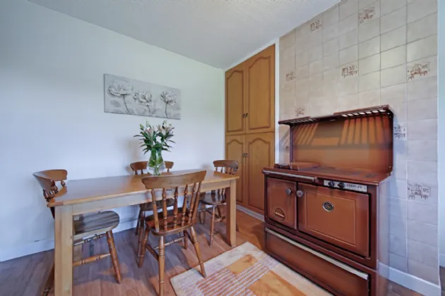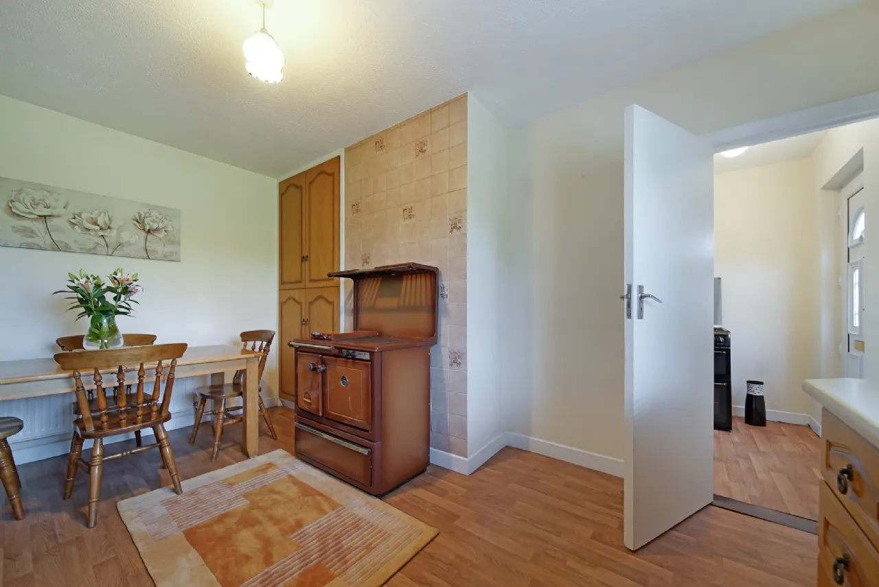 Kitchen/Dining area 4.5 x 3.3 Linoleum covering on floor. Eye and low level units with single drainer sink. Plumbed for washing machine/tumble dryer. Feature Stanley range which heats radiators and water. Airing cupboard with immersion.