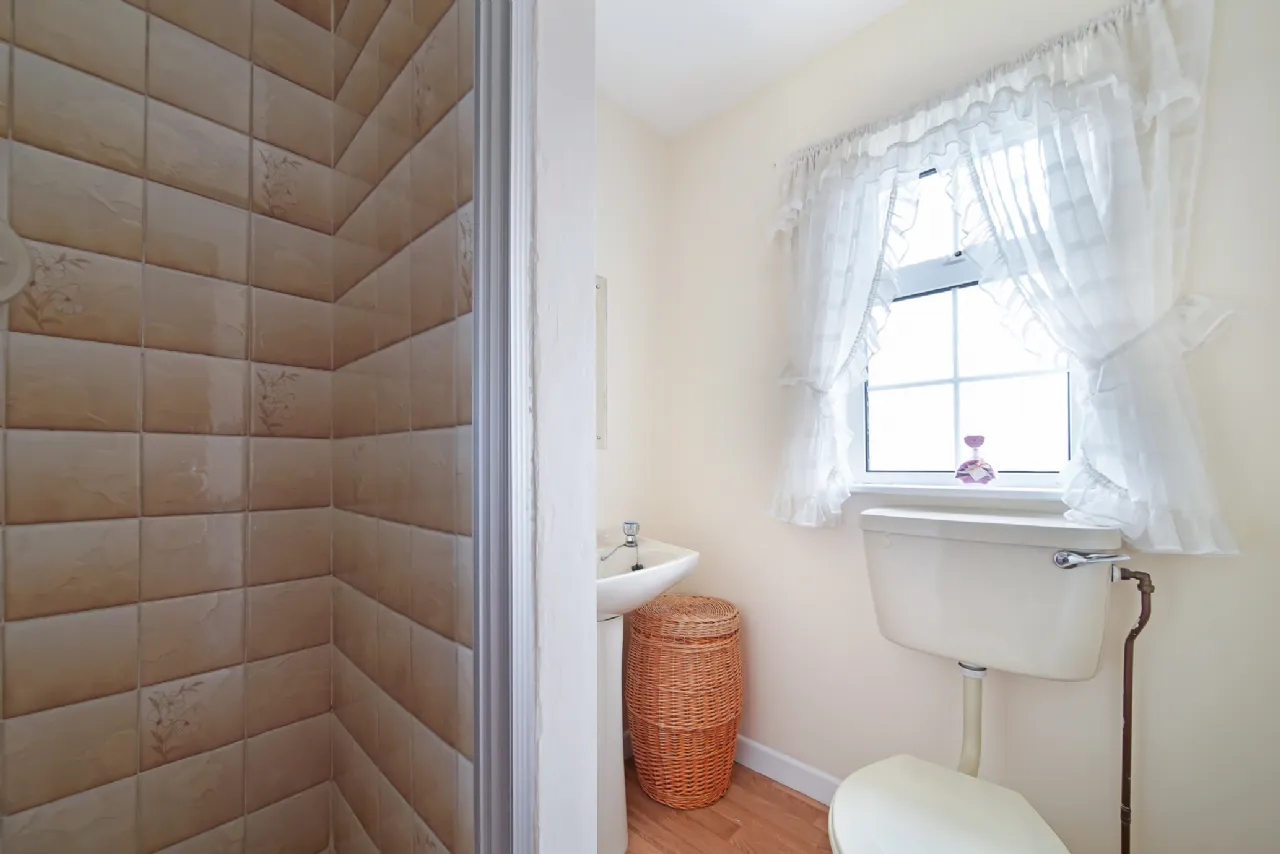 Bathroom 3.1 x 2.0 Tiled flooring and walls tiled from floor to ceiling. Comprising w.c, wash hand basin and bath.