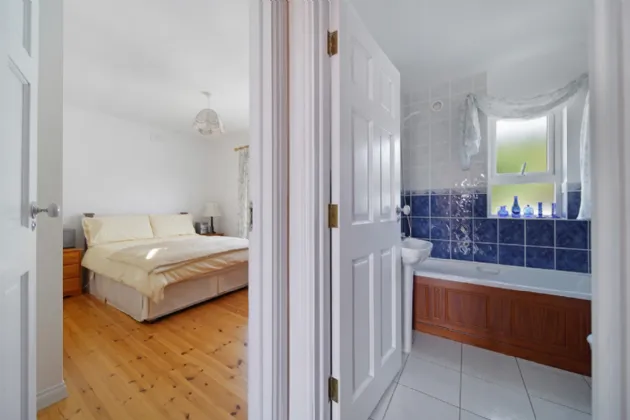 Ensuite 2.5 x 1.1 Tiled flooring and partially tiled walls. Comprising w.c, wash hand basin and electric shower.