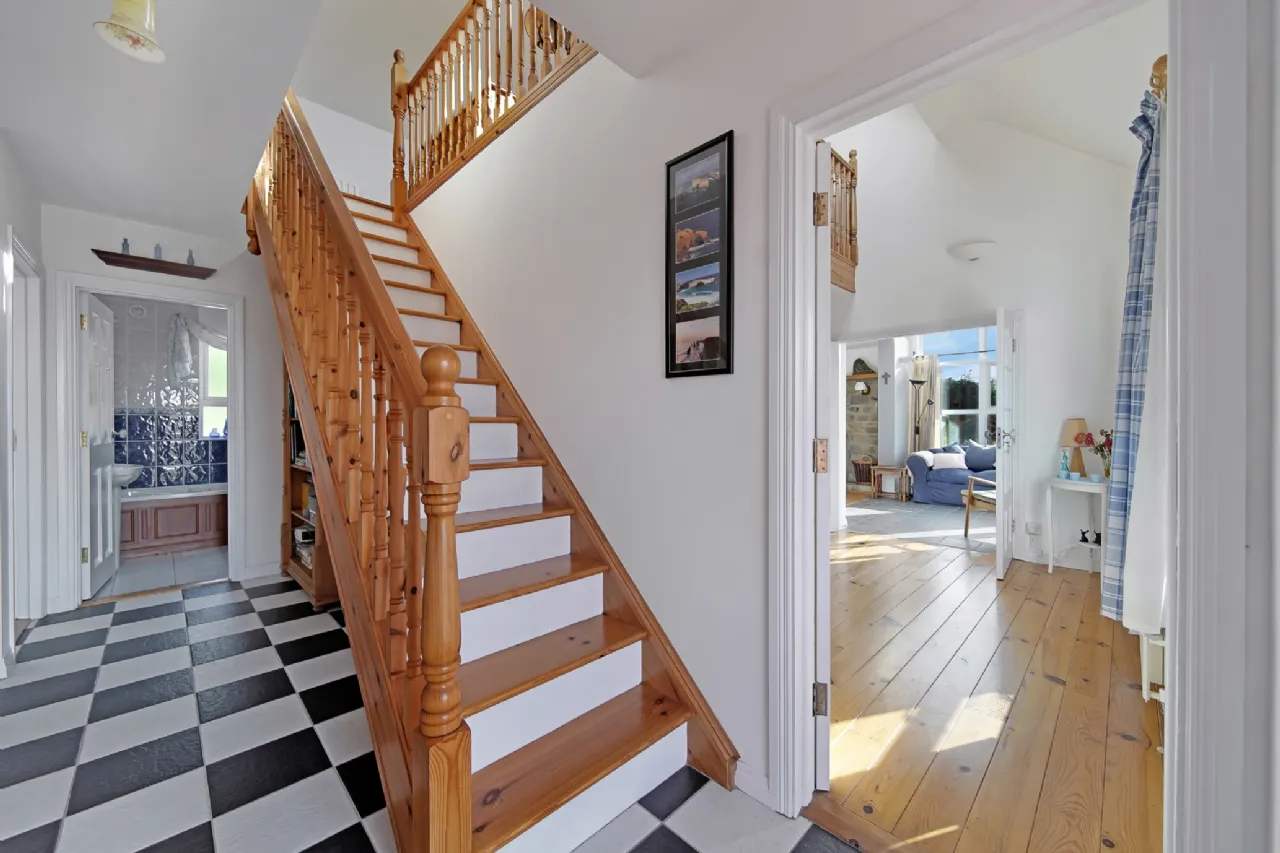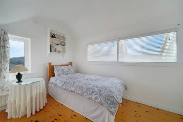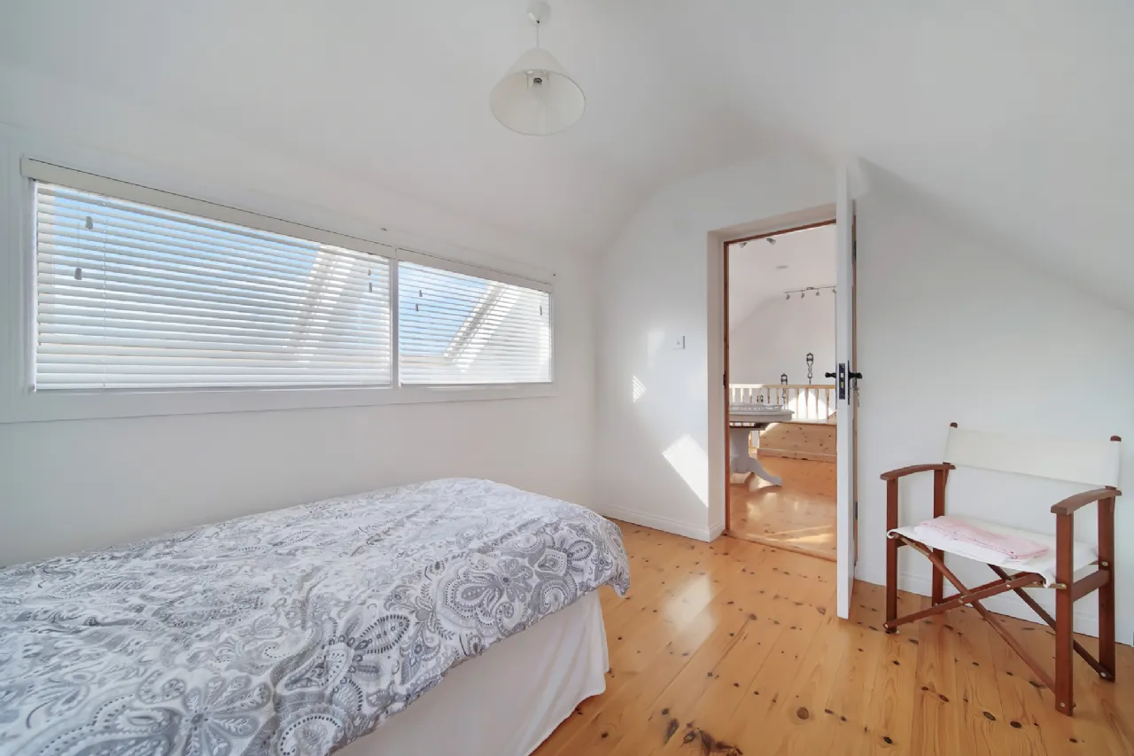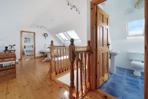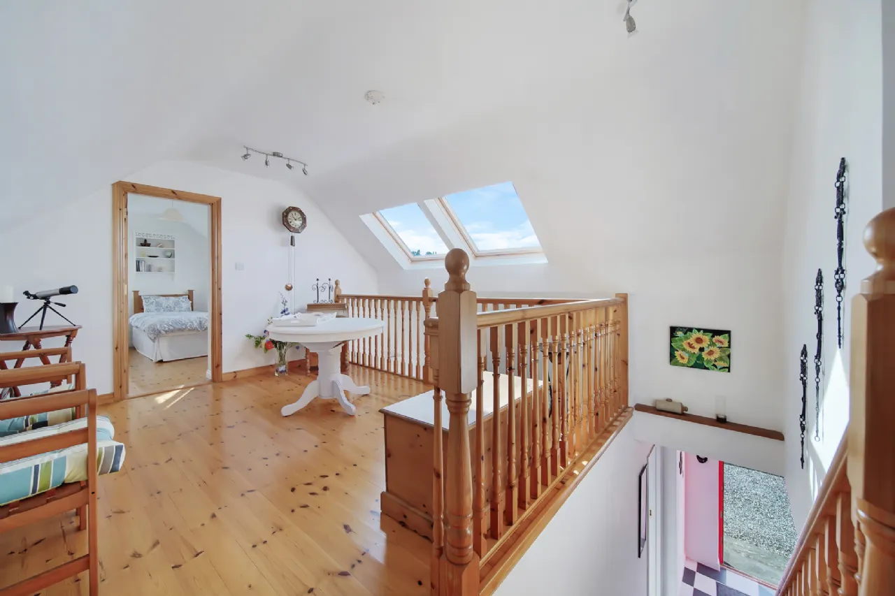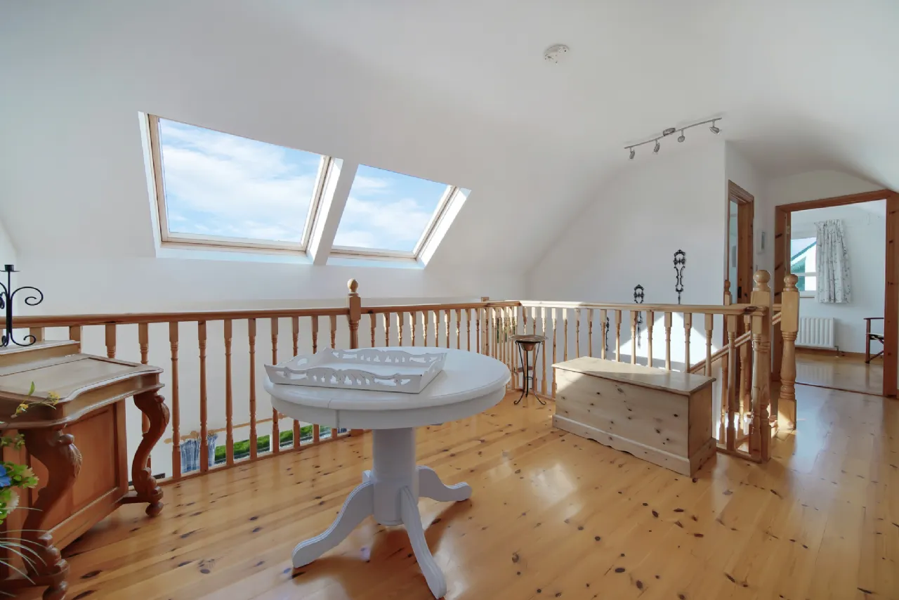 Landing 6.6 x 3.3 Pine flooring. Velux windows promoting voastal views. Balcony overlooking living room. Ideal seating/reading area.