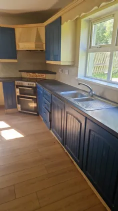 Kitchen 5.3 x 2.6 Laminated timber flooring. Eye and low level units with double drainer sink and tiled splash back. Built in oven and hob with overhead extractor fan.