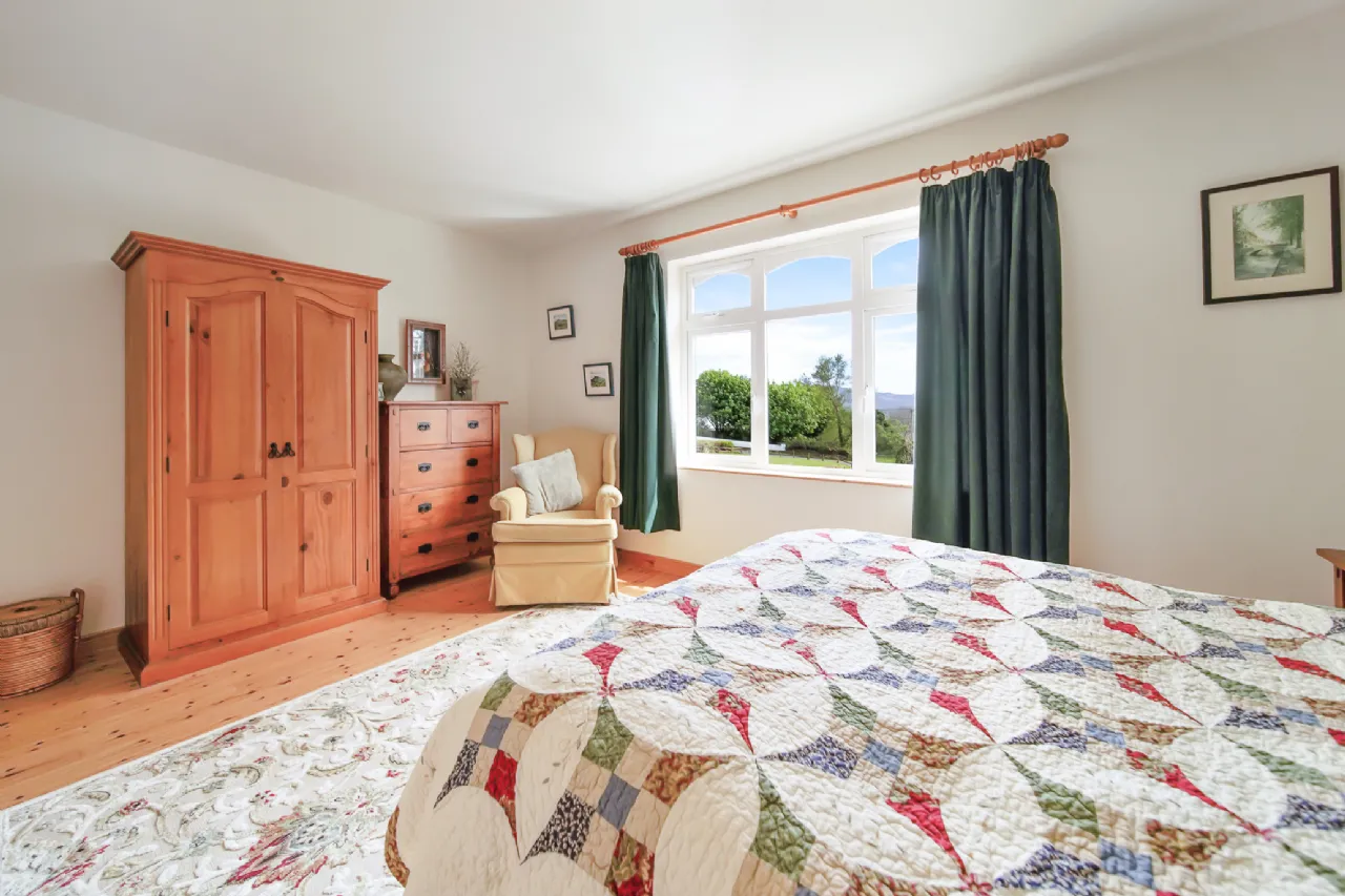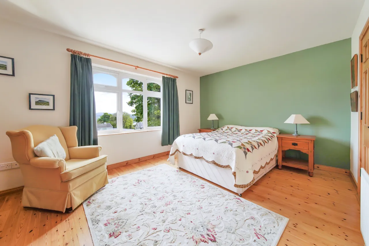 To the front, a stone driveway provides ample access and parking for at least three cars. The rear garden is fully enclosed offering excellent privacy. A striking view from the front, which can be enjoyed from the paved surround of the house, in addition to an extensive lawn, creates a serene outdoor retreat.