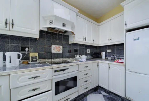 Kitchen 3.2 x 2.2 Tiled flooring. Eye and low level units. Built in electric oven with four ring hob and overhead extractor fan. Plumbed for dishwasher.