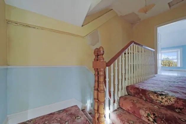 Hallway 6.0 x 2.0 Carpet covering on floor. Carpet covered staircase leading to first floor. Coving and centre ceiling rose.