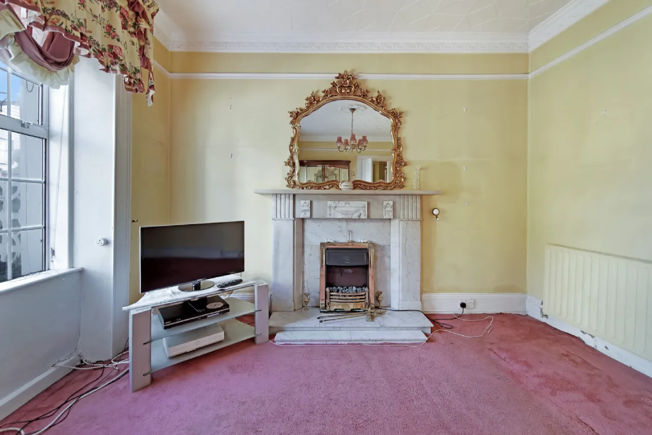 Bedroom 1/Lounge 6.7 x 3.6 Large room with double aspect windows. Coving and ceiling rose.