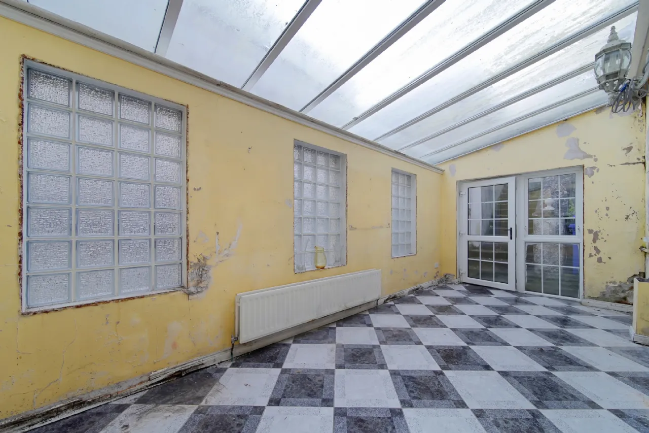 Sun Room 6.3 x 2.8 Tiled flooring. Skylight window promoting natural light. Door leading to rear of property.