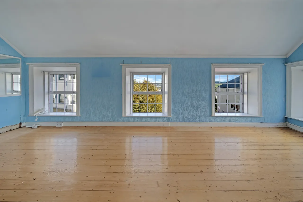 Bedroom 4 6.6 x 3.6 Wooden flooring. Double aspect windows. Built in wardrobe. Coving and ceiling rose. Views over Letterkenny town.
