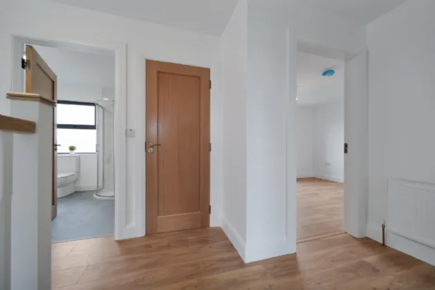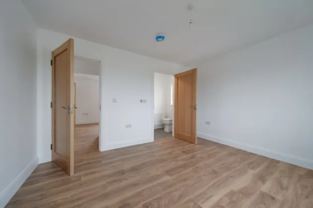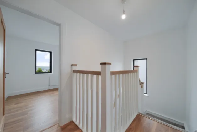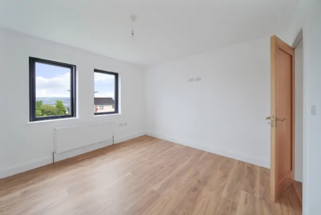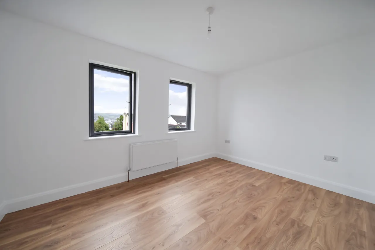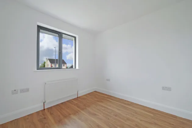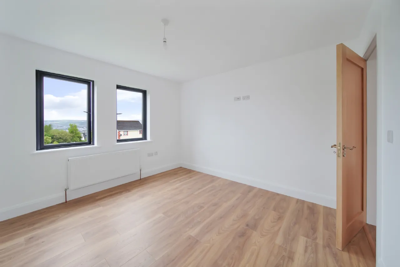 Bedroom 1 4.0 x 3.5 Laminated timber flooring. Window promoting views over Letterkenny Town. Data points for media wall.