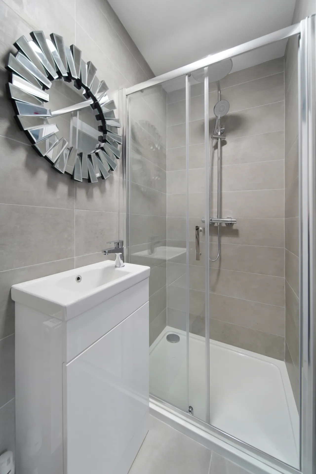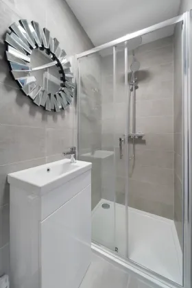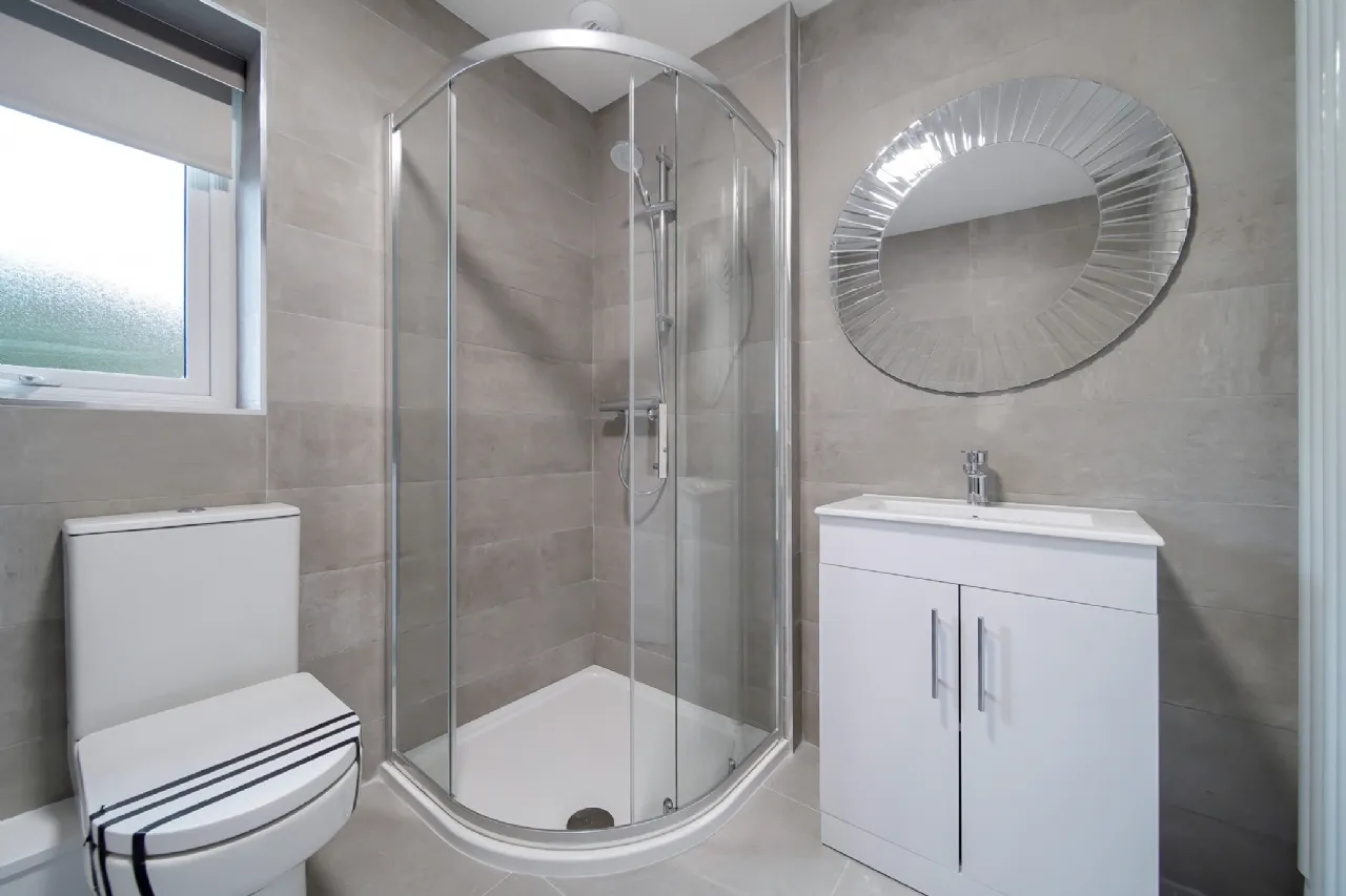 • All tiling in showers and around bath