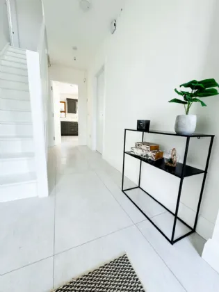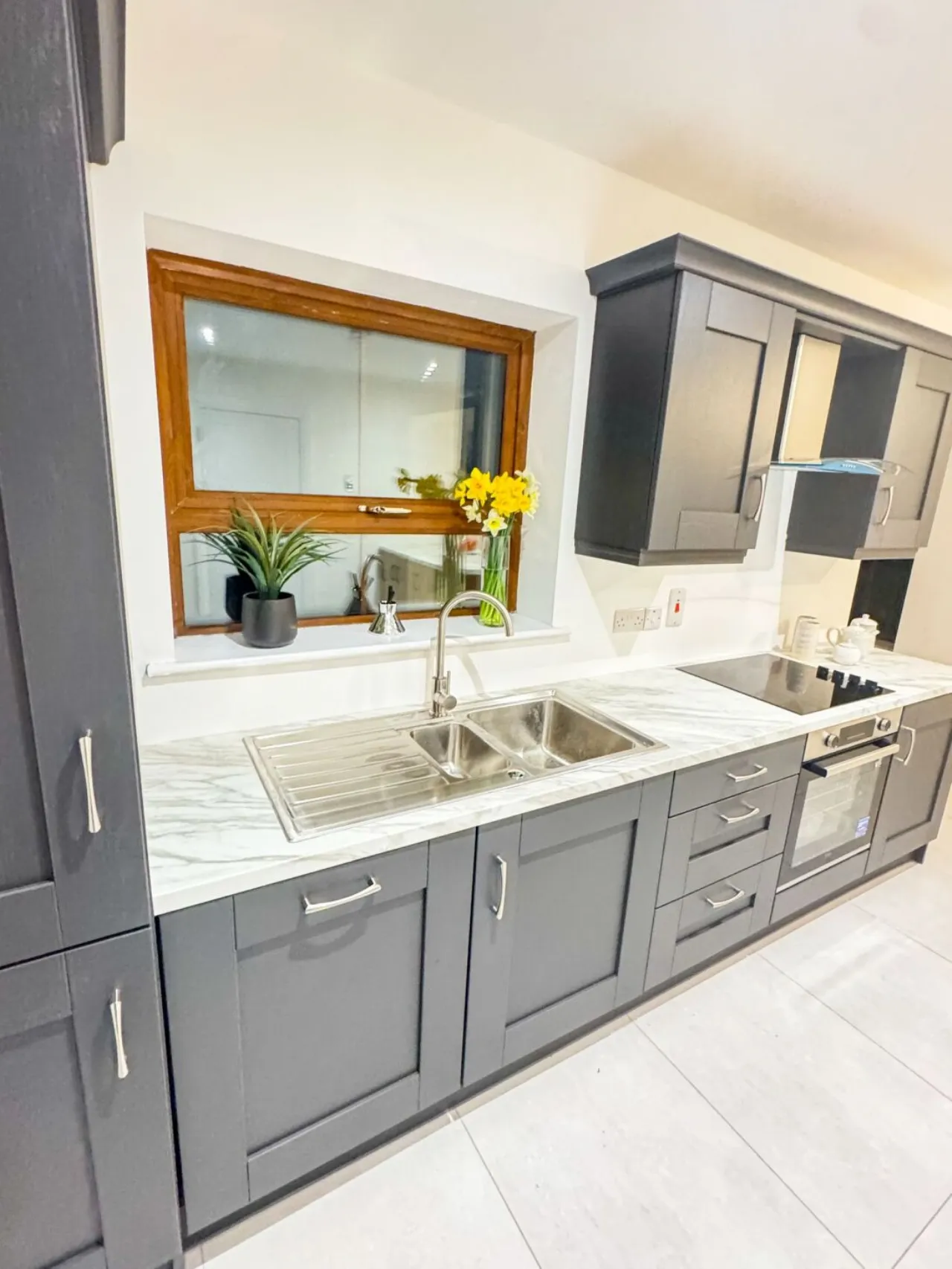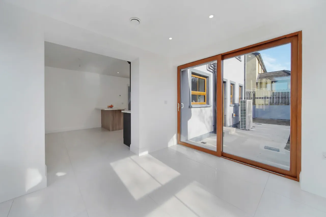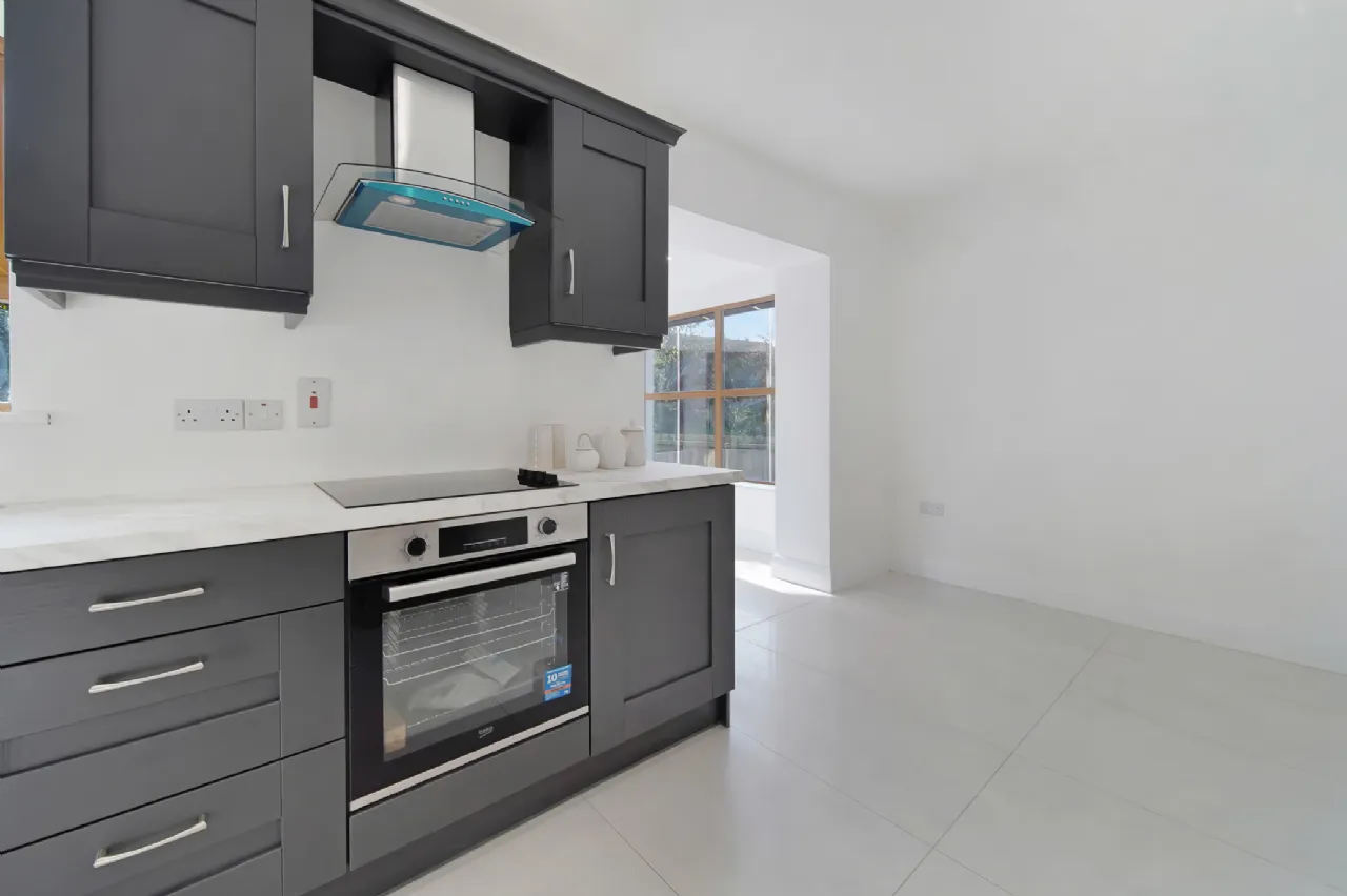 Kitchen/ Dining Room 5.7m x 3.6m Broad tile flooring. Eye and low level timber painted units. Built in Beko oven and 4 ring hob. Integrated dishwasher. Integrated microwave and fridge freezer. Sun Lounge located from here.