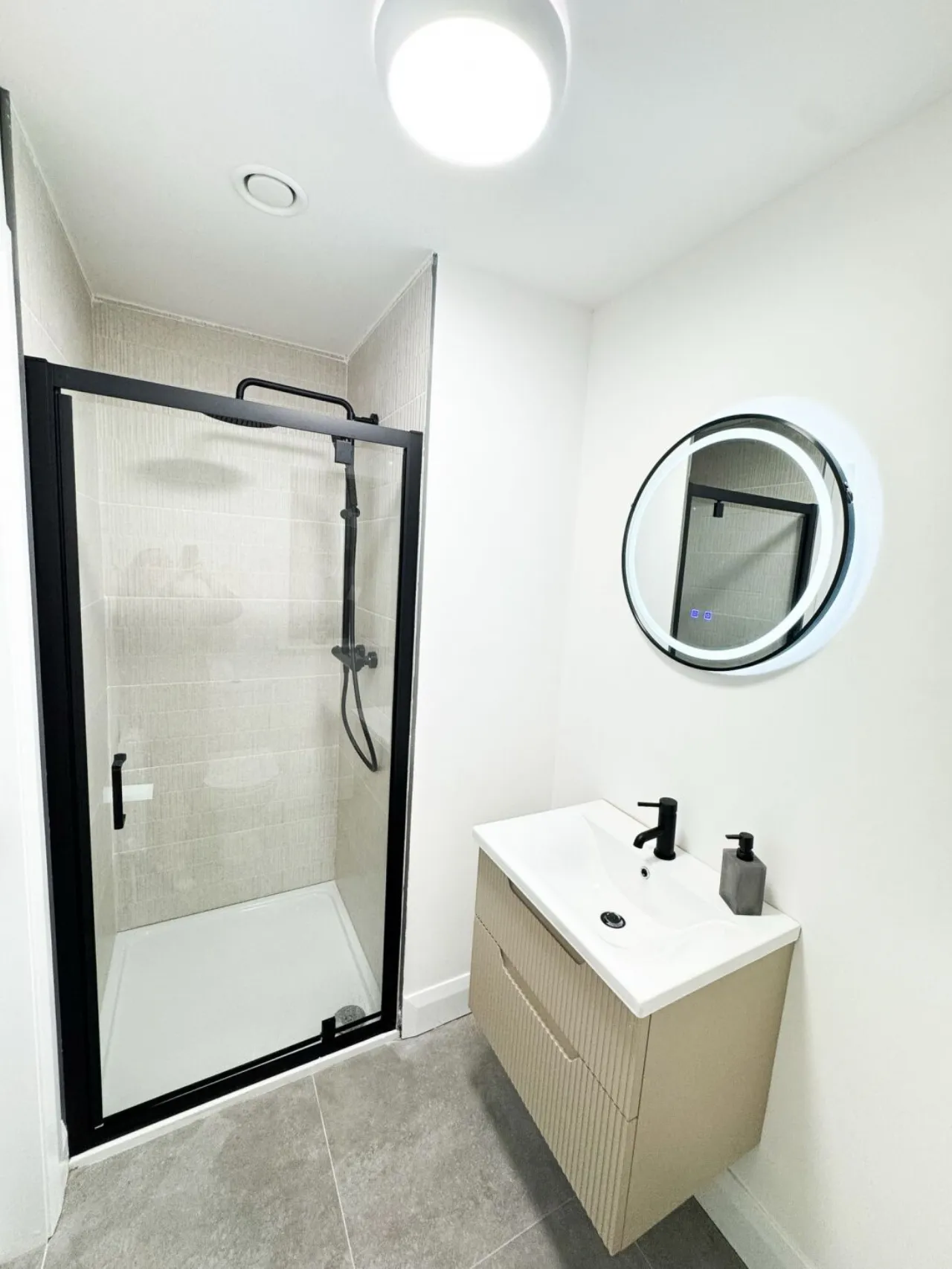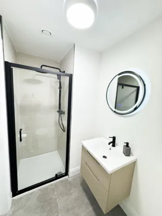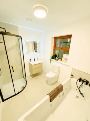 En-Suite Large shower. WC and wash hand basin. Fitted heated mirror.