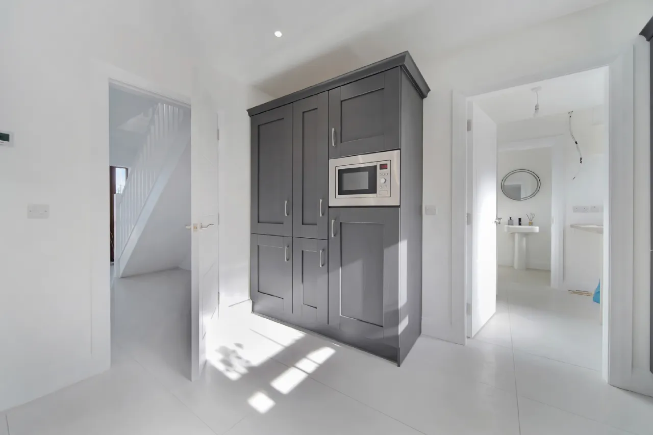 Utility Room 2.3m x 2.23m Broad tile flooring. Eye and low level units. Plumbed for washing machine.