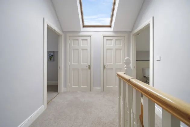 Landing Airing cupboard with immersion. Carpet covering on floor. Velux window promoting natural light