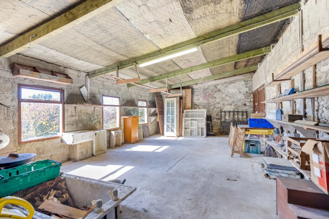 Upon entering the dining room, you are greeted by a delightful space with a feature fireplace and elegant granite tiles, creating a warm welcome home. To the left lies the kitchen, the heart of the residence, showcasing an AGA stove that embodies the cozy country house aesthetic. The kitchen is fully equipped to meet everyday needs and has plenty of storage. Adjacent is the impressive breakfast room, highlighted by large windows that frame the stunning water views. Beyond the kitchen is a spacious utility room, offering ample storage for family necessities. Next to it, you’ll find a wet room and a home office. The utility room also provides internal access to the garage, which holds significant potential for further enhancements, such as additional living space, a cinema room, game room, or an extra bedroom.