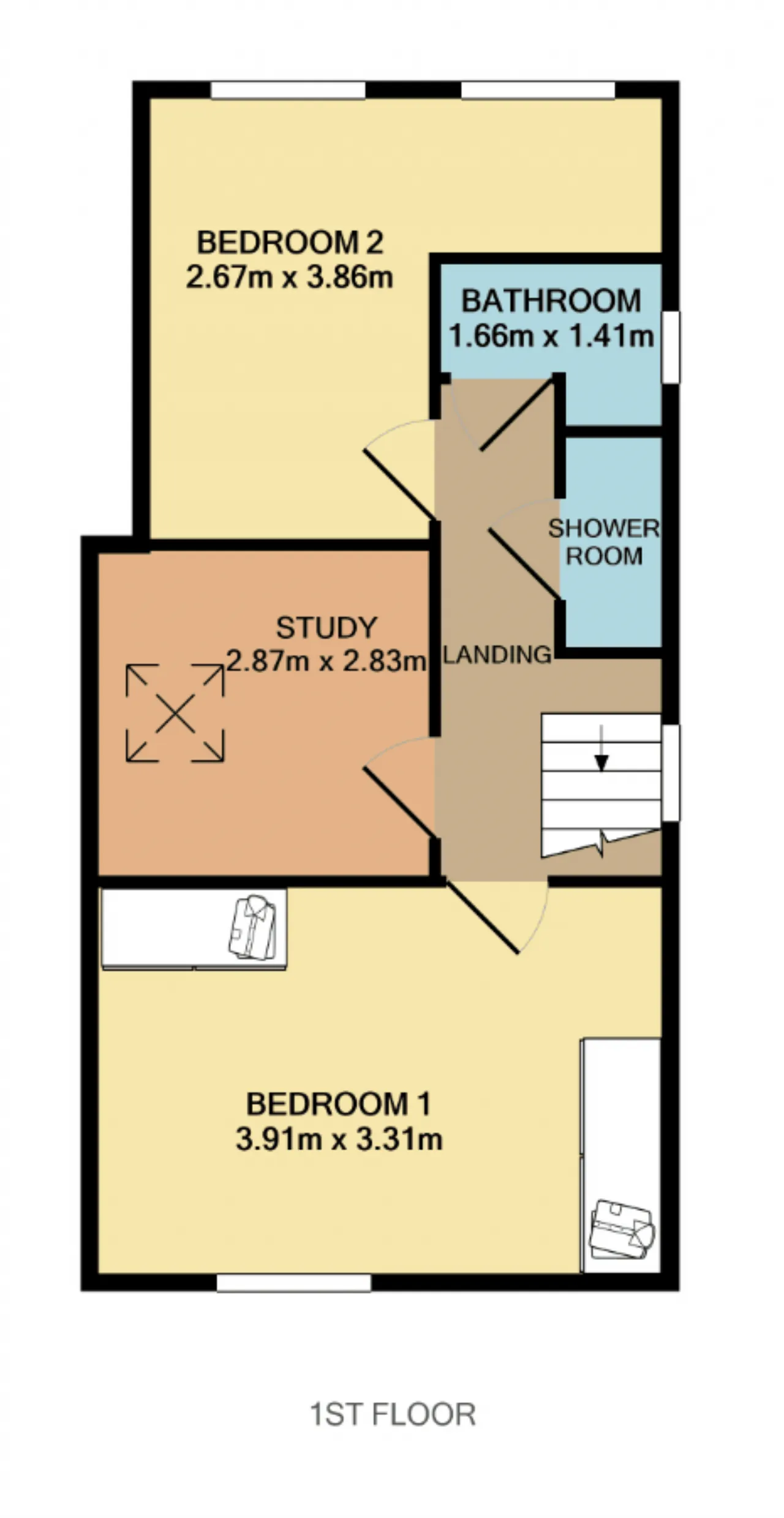 Bedroom 2 2.67m x 3.86m Double bedroom with two windows overlooking the rear garden