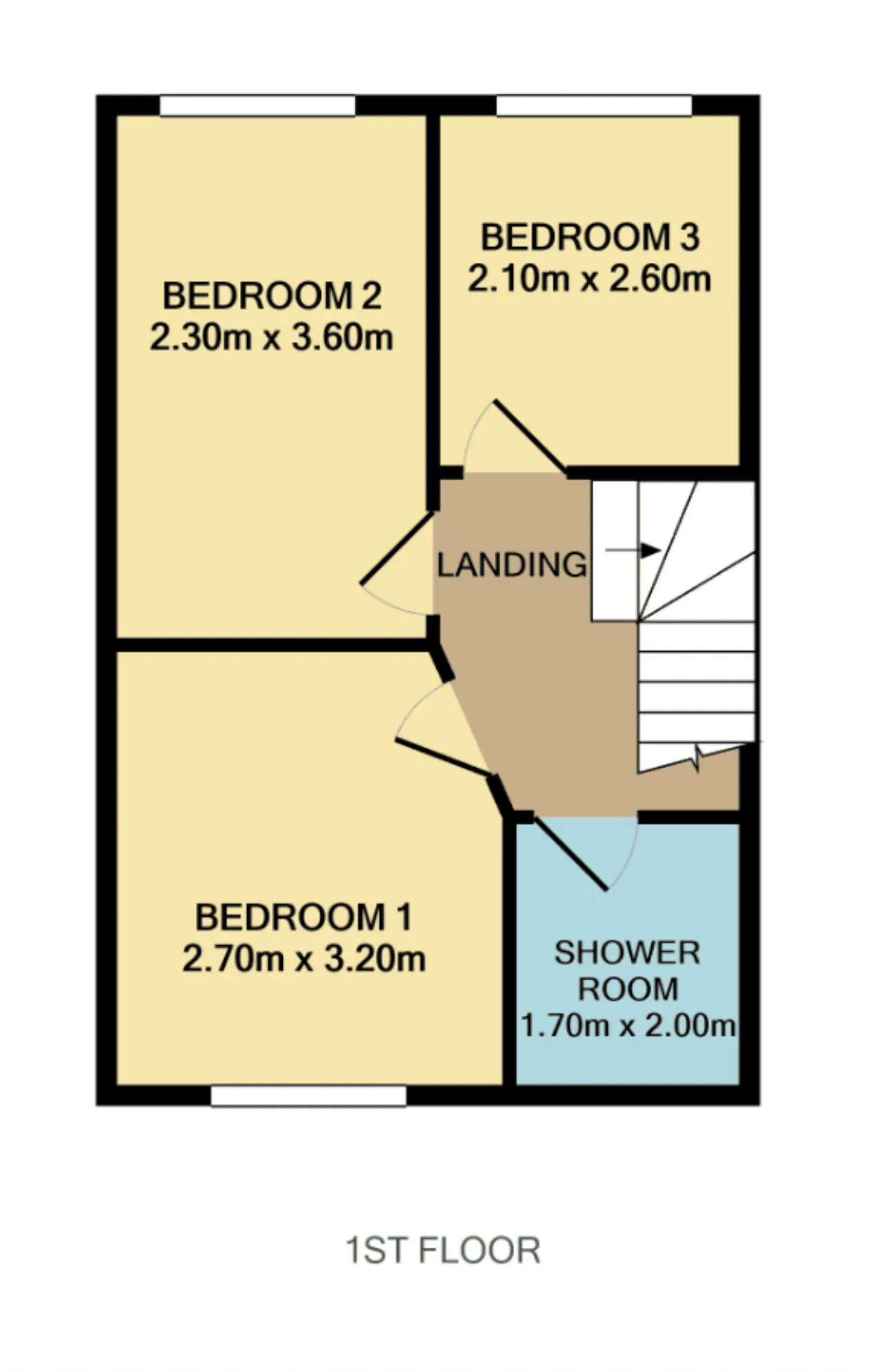 Bedroom 1 3.2m x 2.7m Double room with fitted wardrobes and laminate flooring.