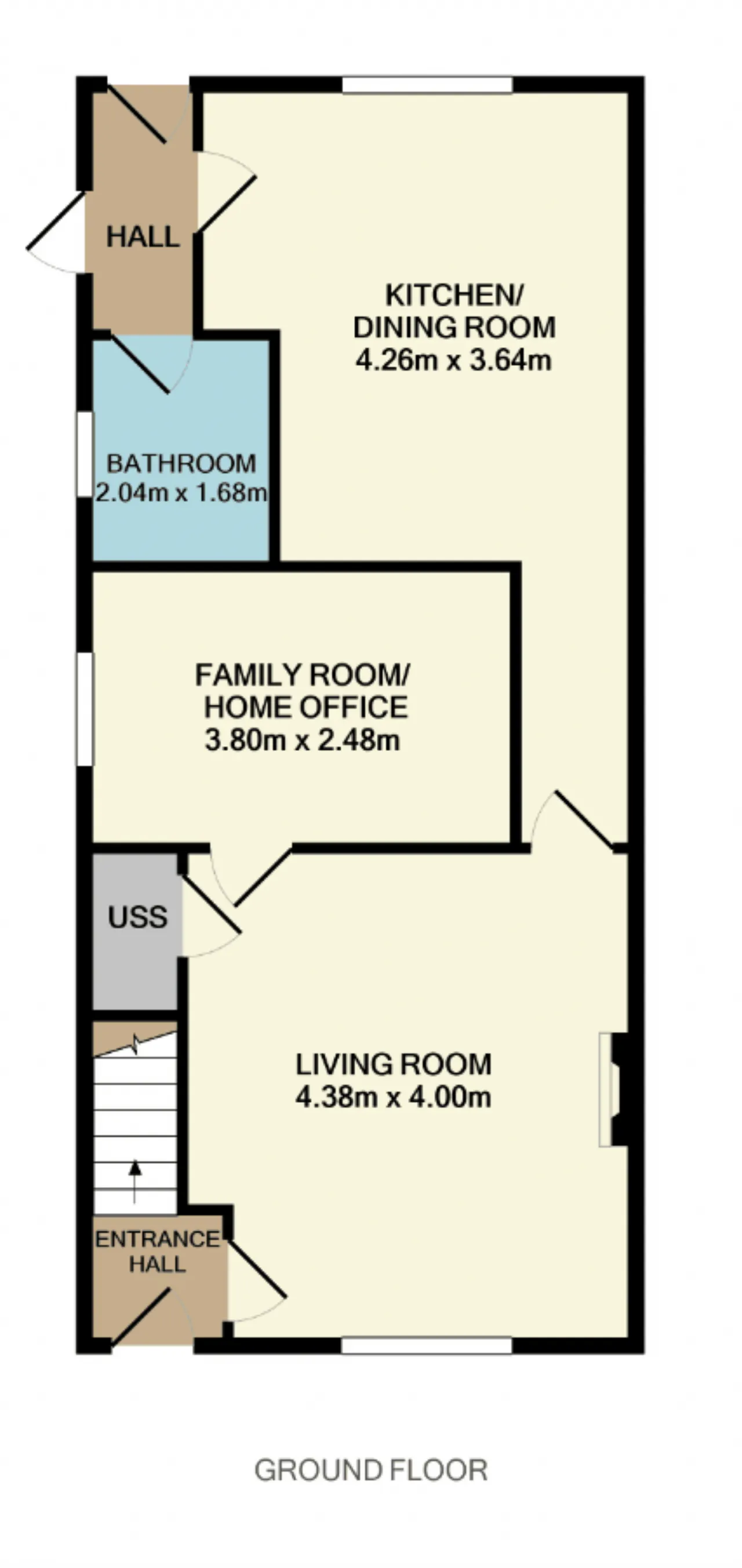 The property encompasses approx. 89sq m of well-proportioned accommodation which comprises of a welcoming entrance hall, living room with ample under stair storage space, family room/home office, large kitchen/dining room, and a downstairs bathroom. Upstairs there are two double bedrooms (with a master ensuite) and a spacious single bedroom currently being utilised as a home office.