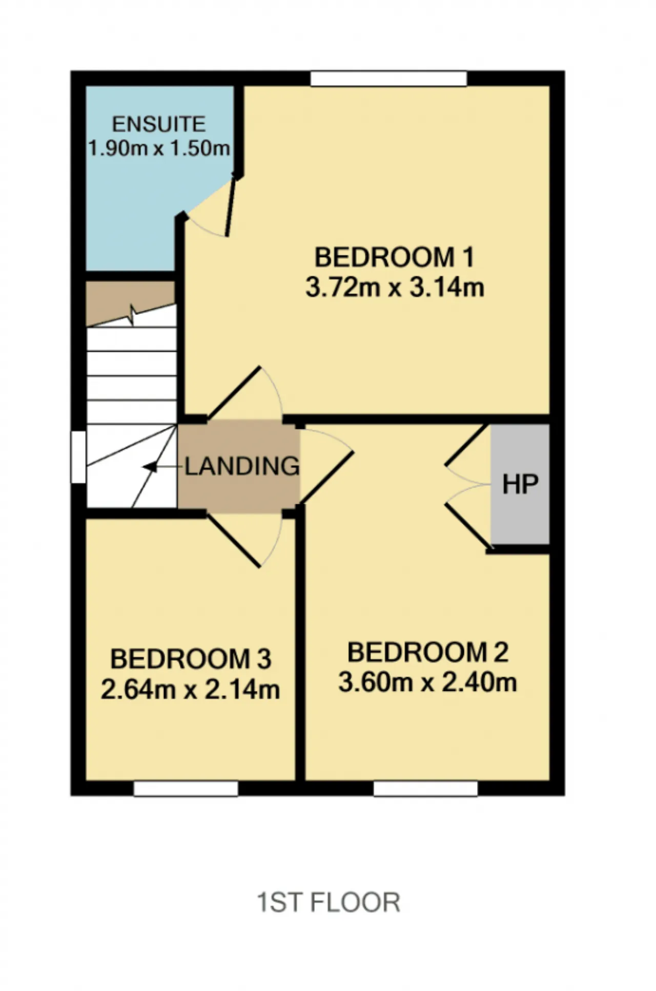 Bedroom 1 3.72m x 3.14m Spacious double bedroom to the front of the property with wood flooring, built in wardrobes and Stira to partly floored attic.