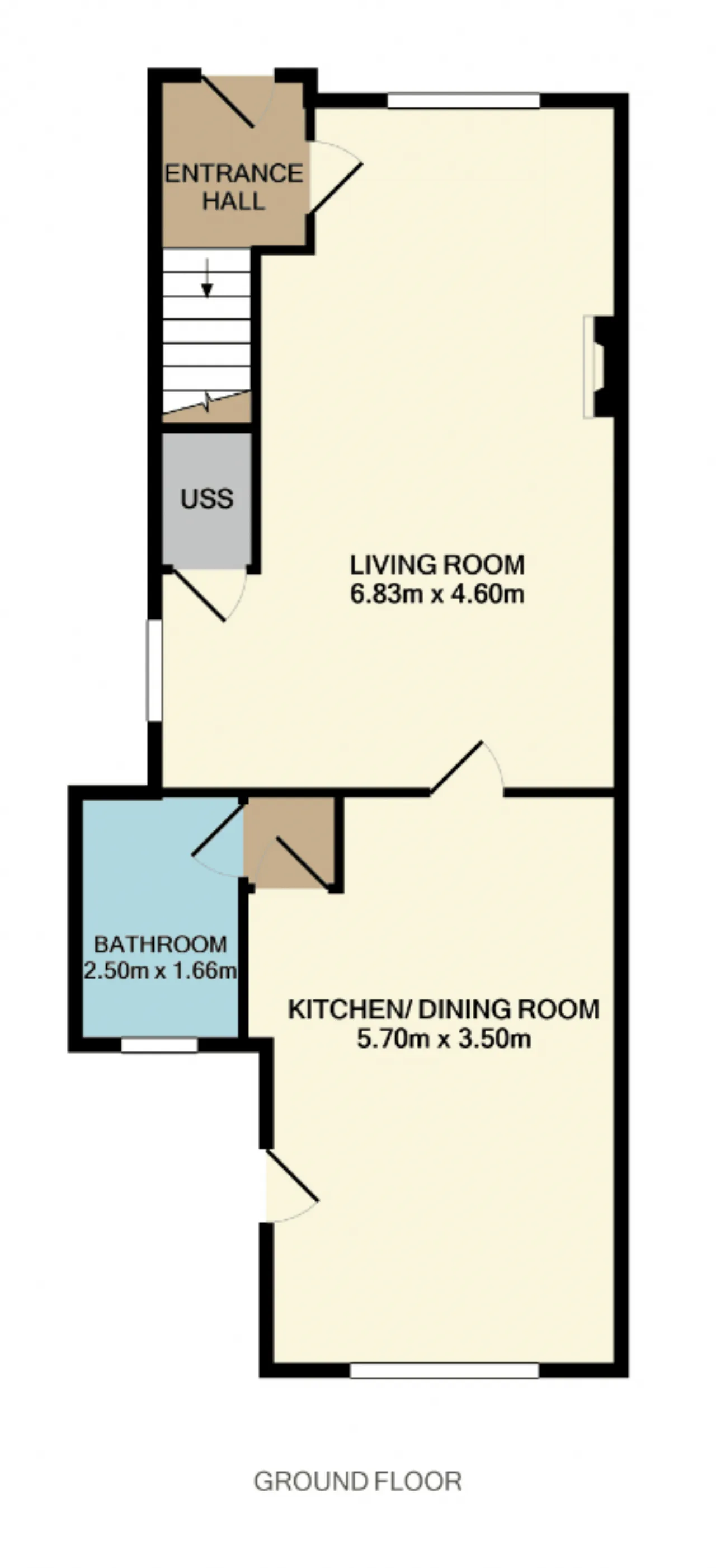 The property extends to approx. 88sq m/947 sq ft and comprises of a welcoming entrance hall, large living room with gas fireplace, kitchen/ dining room, and a newly fitted bathroom complete with Jacuzzi bath and separate rainforest shower. Upstairs there are three spacious bedrooms with a master ensuite.