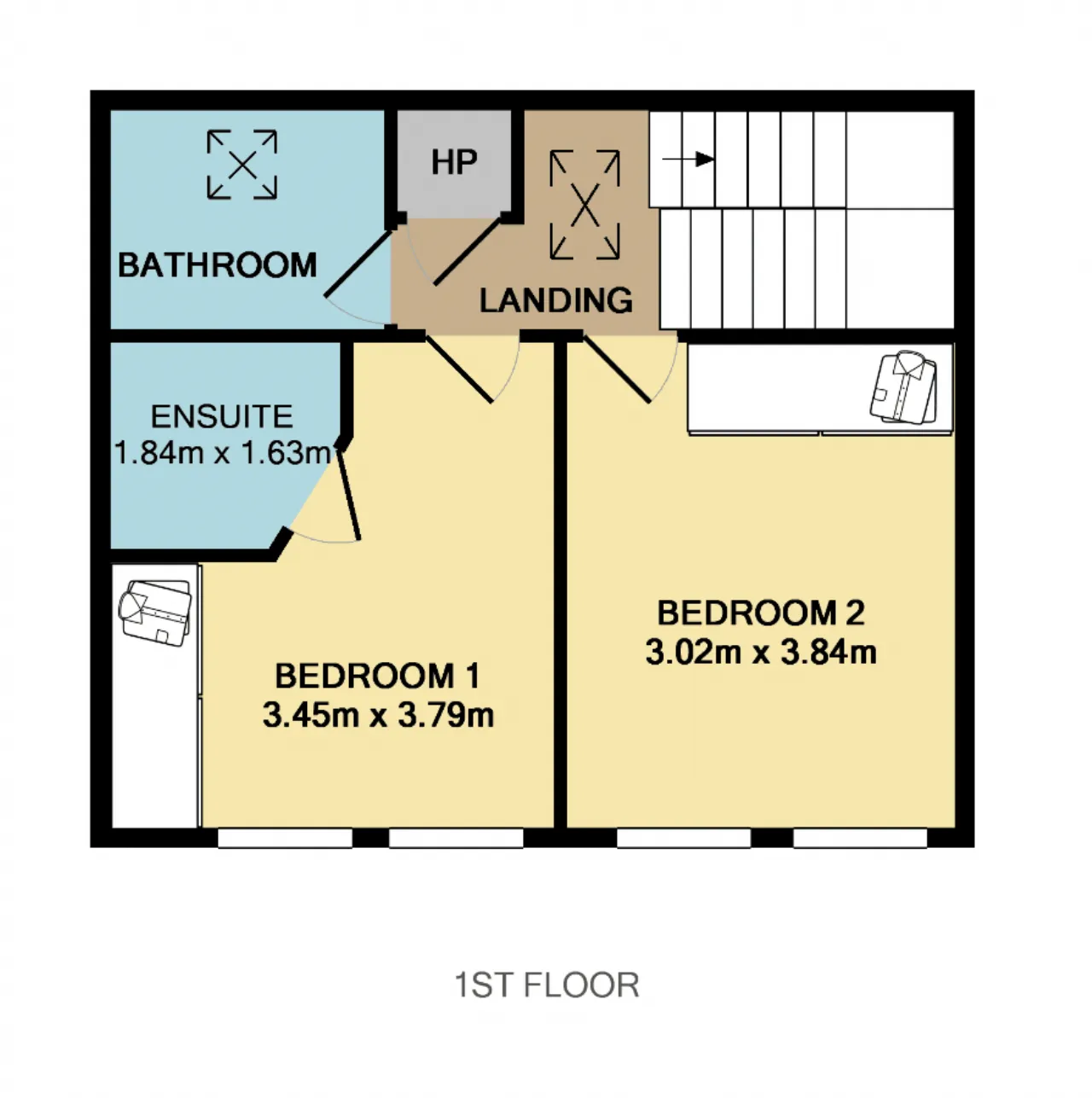 Bedroom 1 3.45m x 3.79m Double bedroom with built in wardrobes, laminate flooring and two large windows providing plenty of natural light overlooking the front.