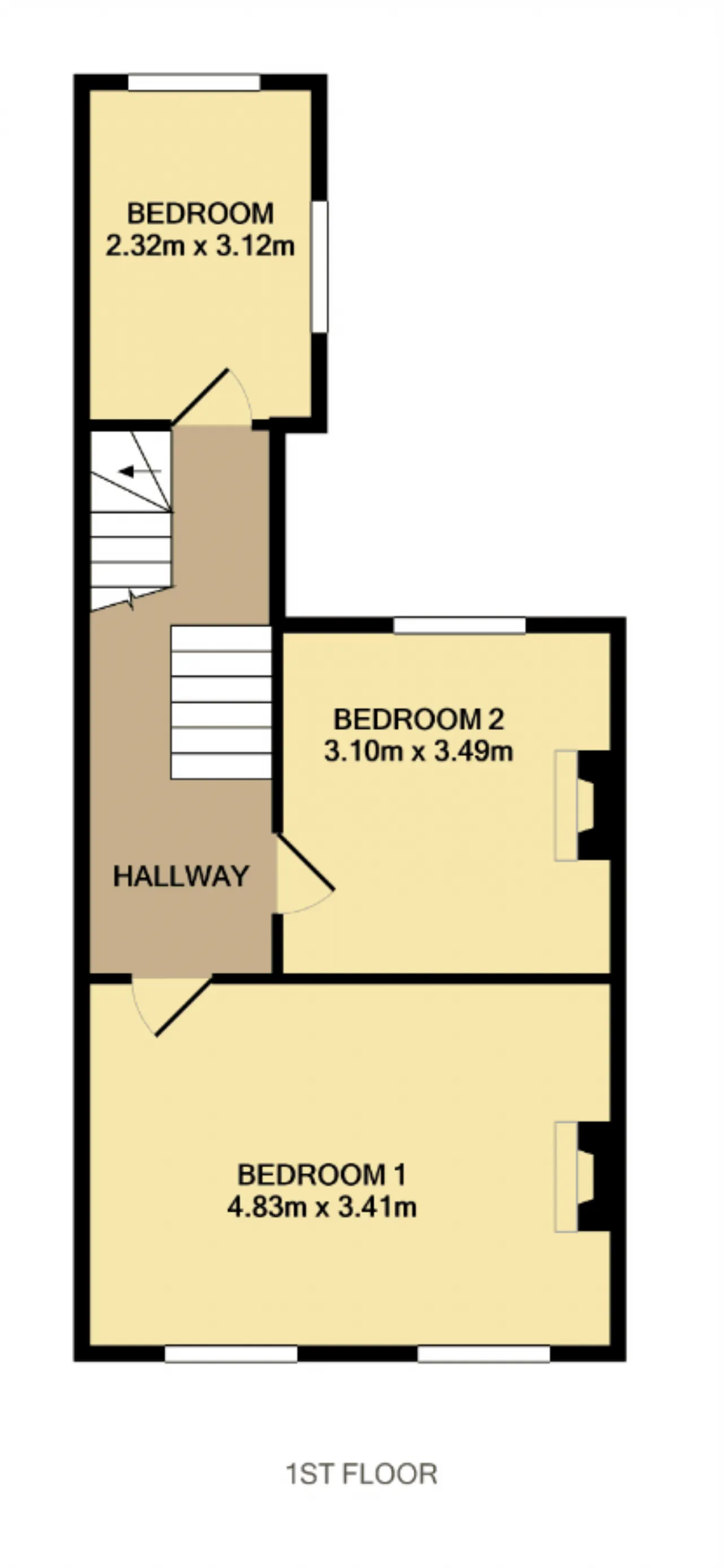 Bedroom Three: Dual-aspect single room located to the rear with built-in wardrobes and fitted carpet