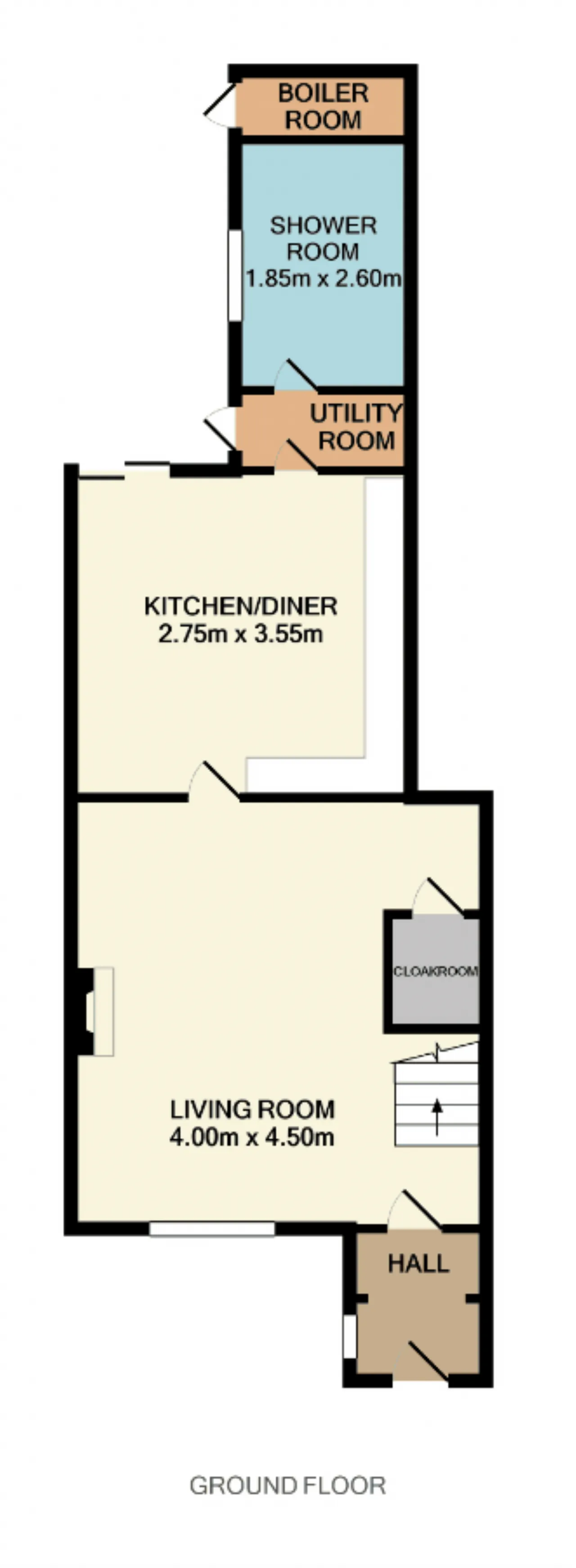 The property briefly comprises: porch, entrance hall, living room with under stairs storage, a kitchen/dining area with a utility and separate shower room behind, boiler room which can be accessed from the rear courtyard. Upstairs contains two double bedrooms, hot press and a study currently being used as a third bedroom.