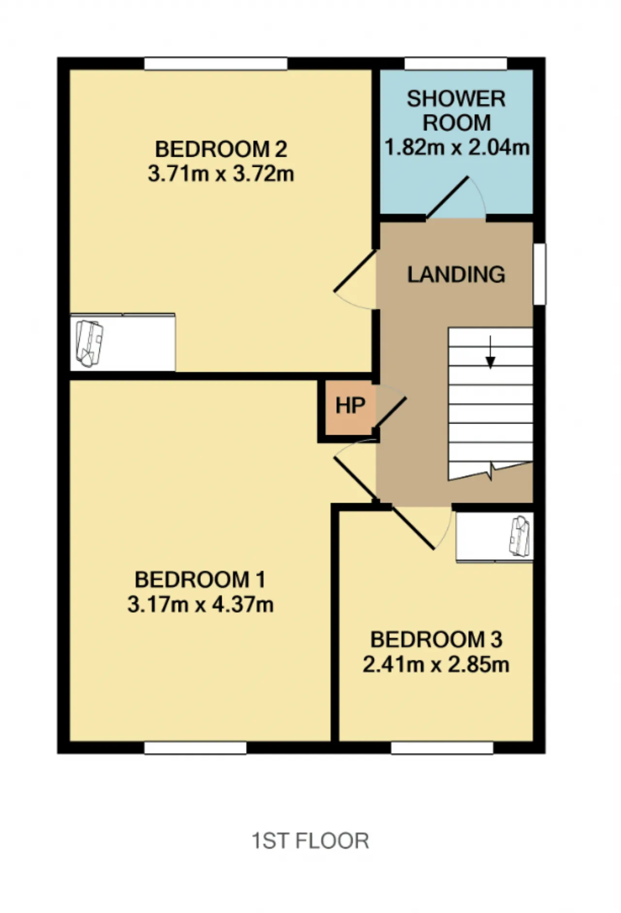 Bedroom 1 3.17m x 4.37m Double bedroom overlooking the front garden