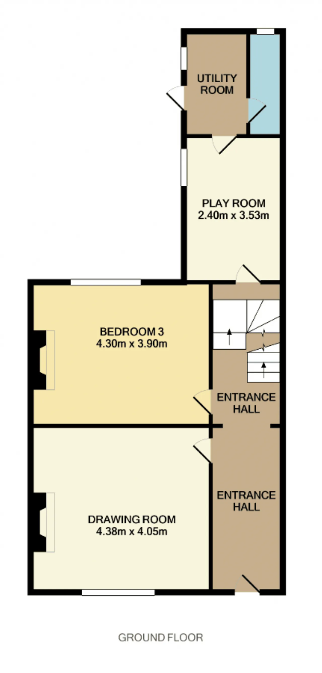 Play Room 3.53m x 2.40m Window to side, storage door to;