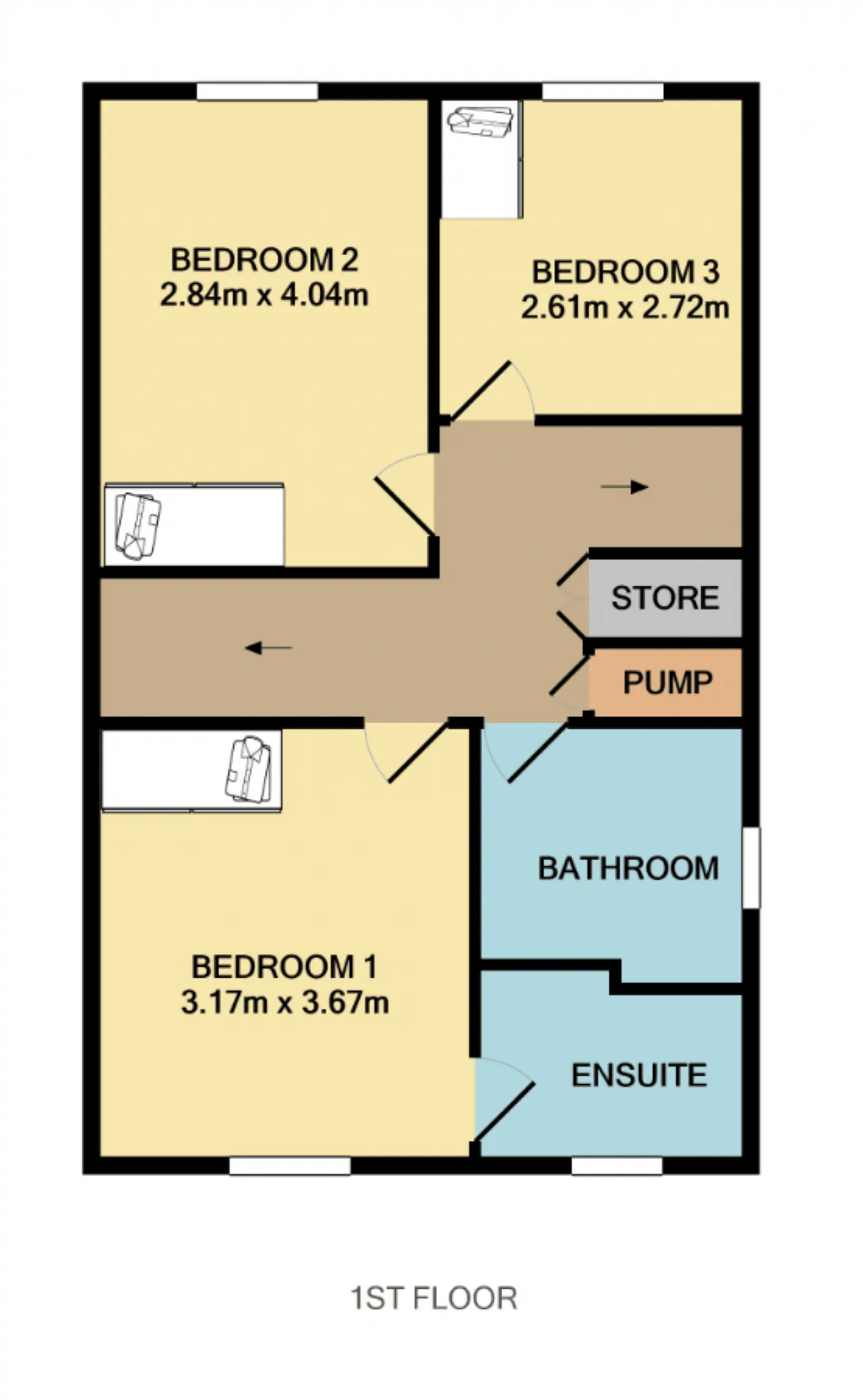 Bedrooms 3: Large single room with built in wardrobes.