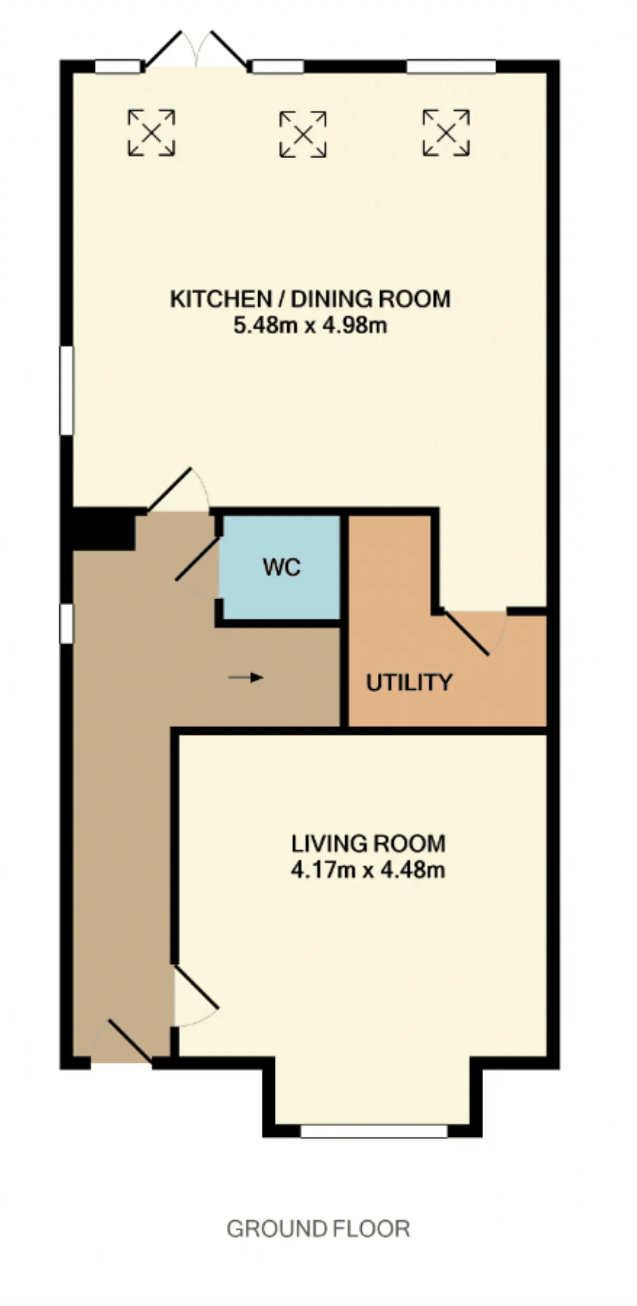 Utility Room: Fitted with floor and eye level units, plumbed for washing machine and space for dryer.