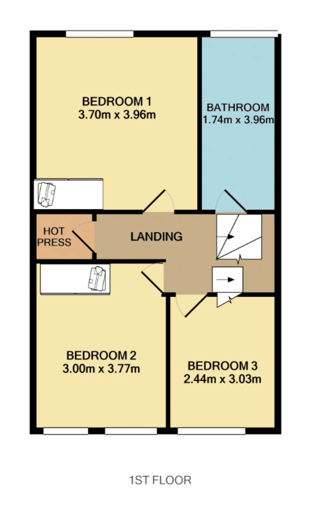 Bedroom 1 3.7m x 3.96m Double room with built in wardrobes.