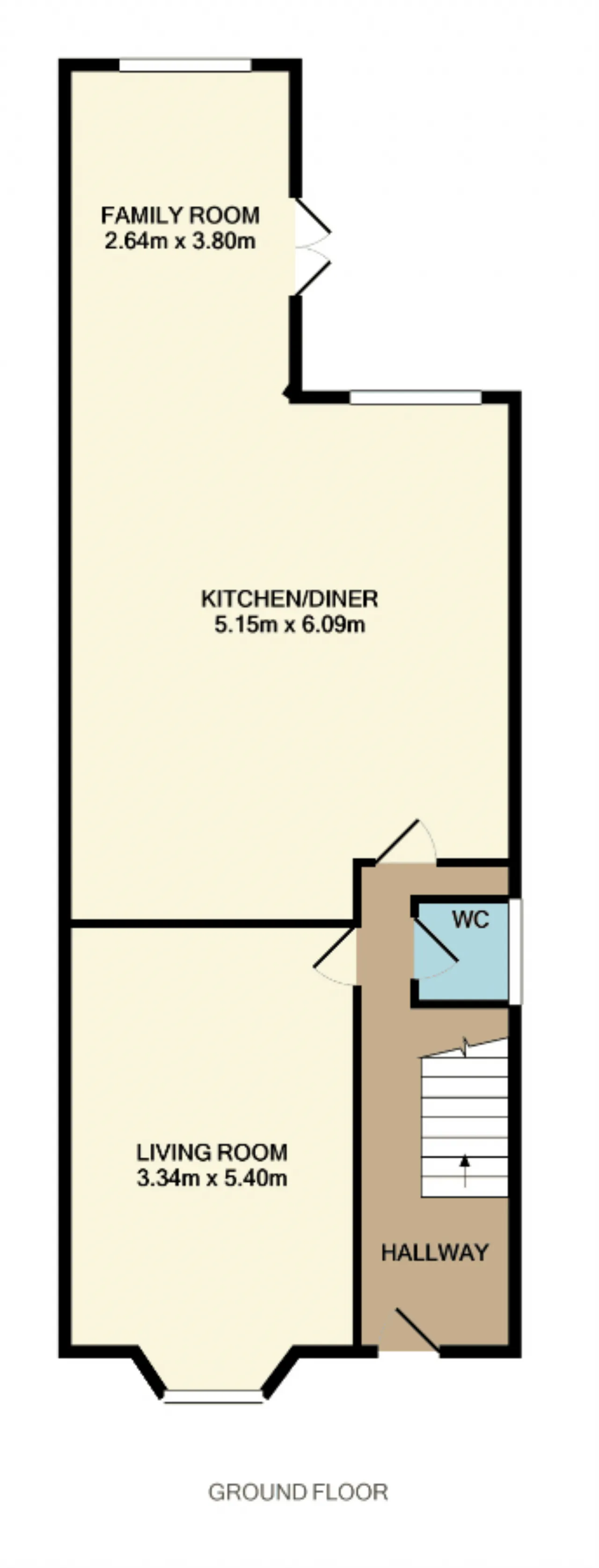 Family Room 2.64m x 3.80m Built in 2011, this fantastic addition to the house is used as an additional TV room / playroom. It has a walnut effect laminate floor, two large Velux windows, recessed lighting and French doors leading out to the patio.