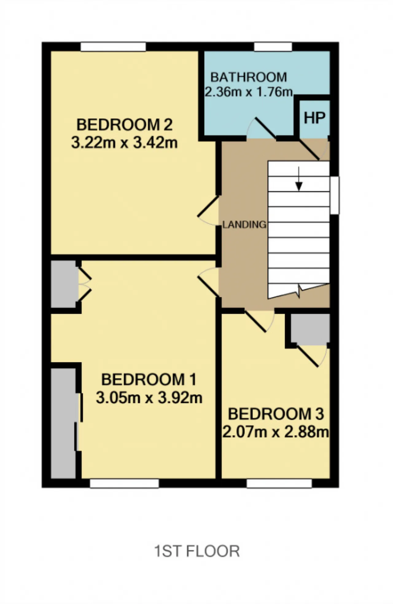 Bedroom 1 3.05m x 3.92m Double bedroom with solid wood flooring and ample storage overlooking the front garden.