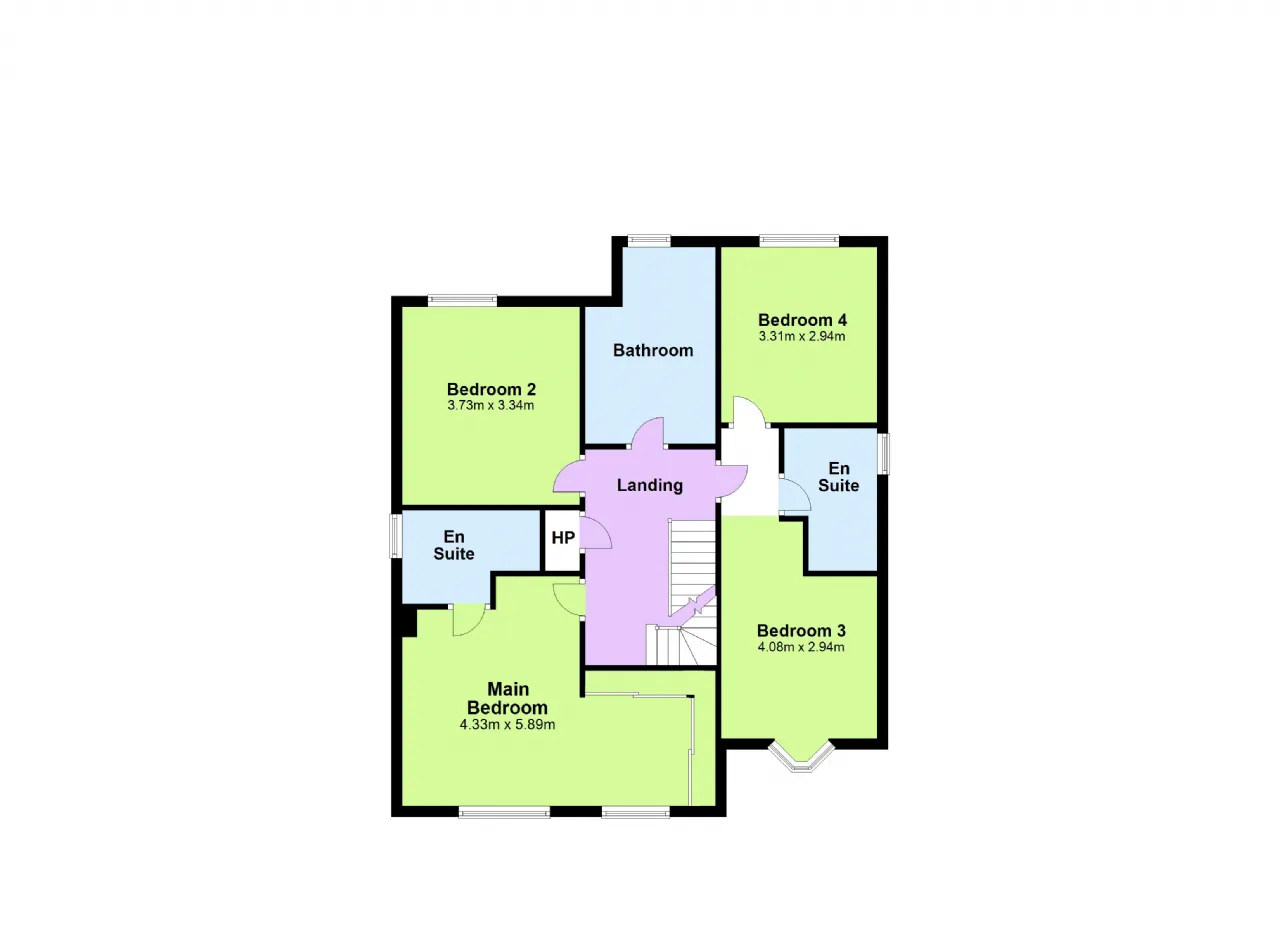 Bedroom 3 4.08m x 2.94m Bay window at the front of the bedroom overlooking front garden. Large double bedroom. With two doors to: