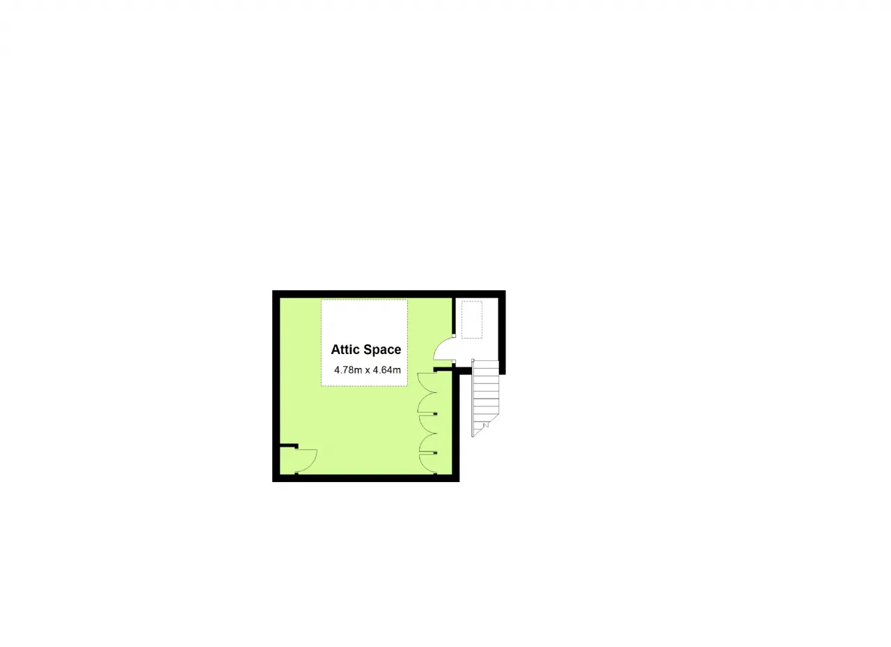 Attic space 4.78m x 4.64m Double room with Velux windows (x6), eaves storage & built in storage. Wooden floor. Recessed lighting. Fabulous contemplative space for reading and studying.
