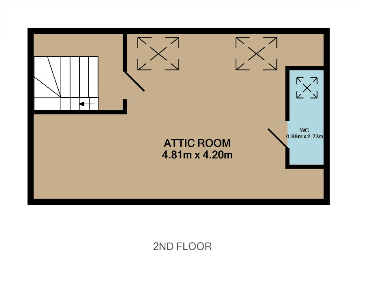Attic Room: Large attic room with laminate timber floor, velux windows and recessed lighting. W.C.