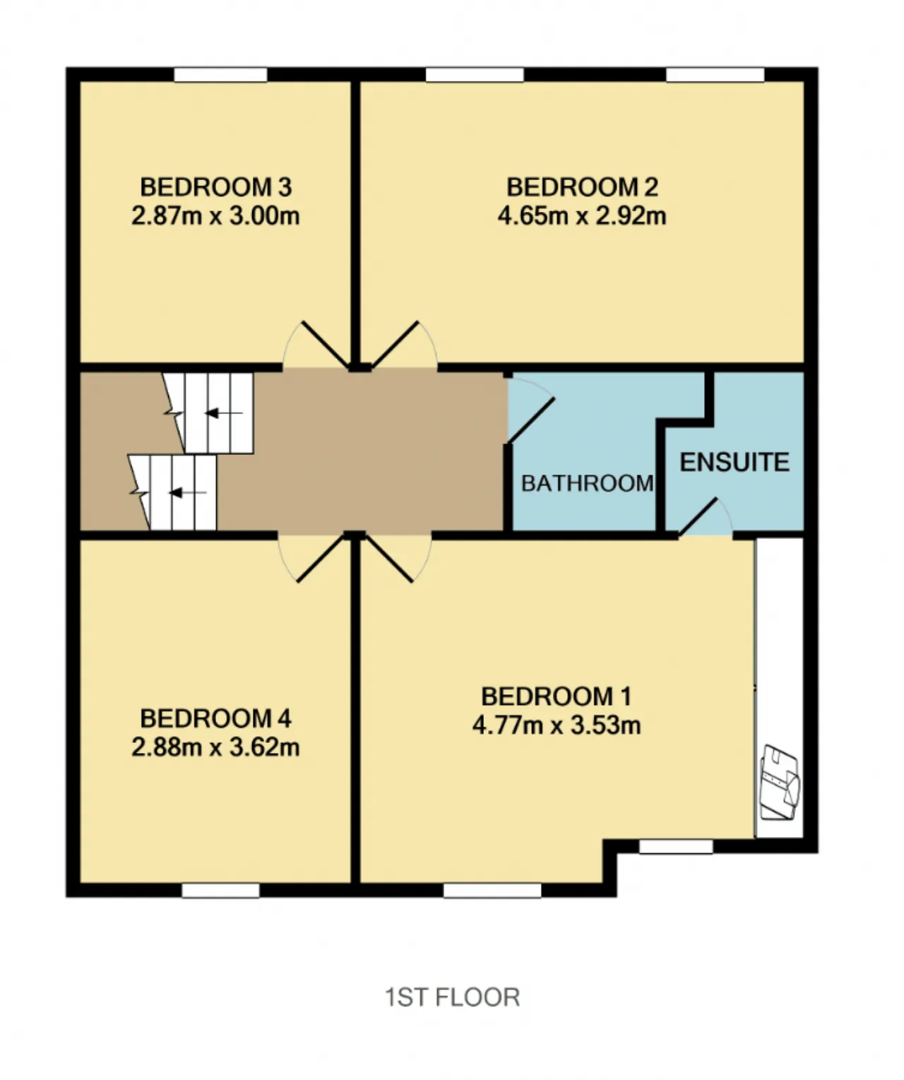 Bedroom 1: Large double room with fitted wardrobes, two windows, tongue and grooved floorboards and an ensuite shower room.