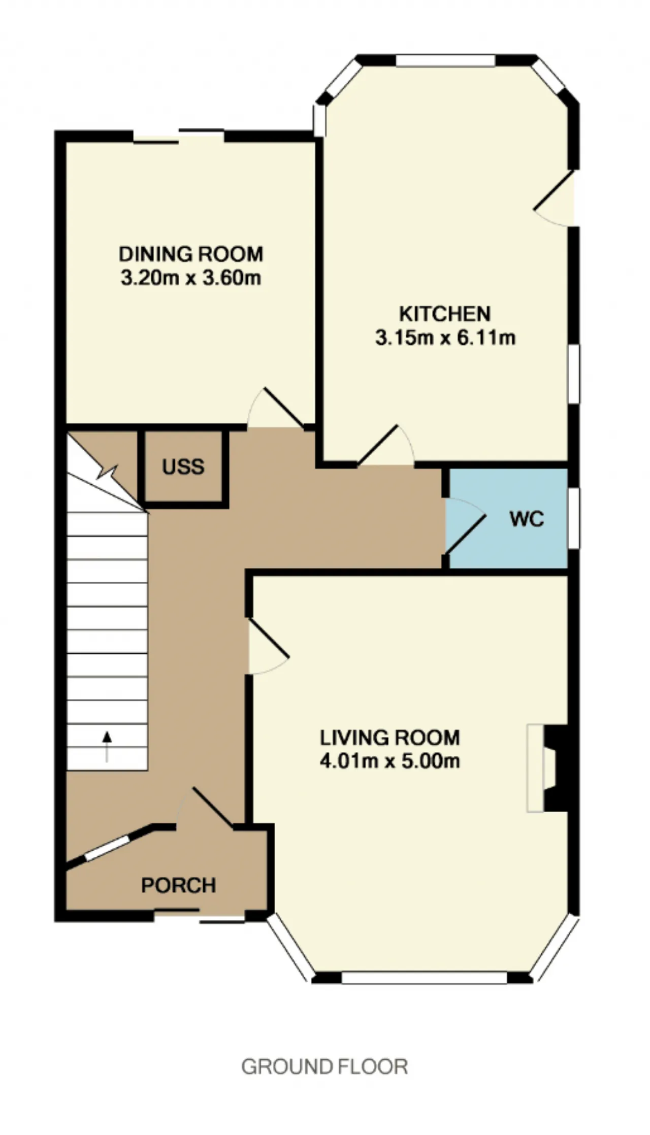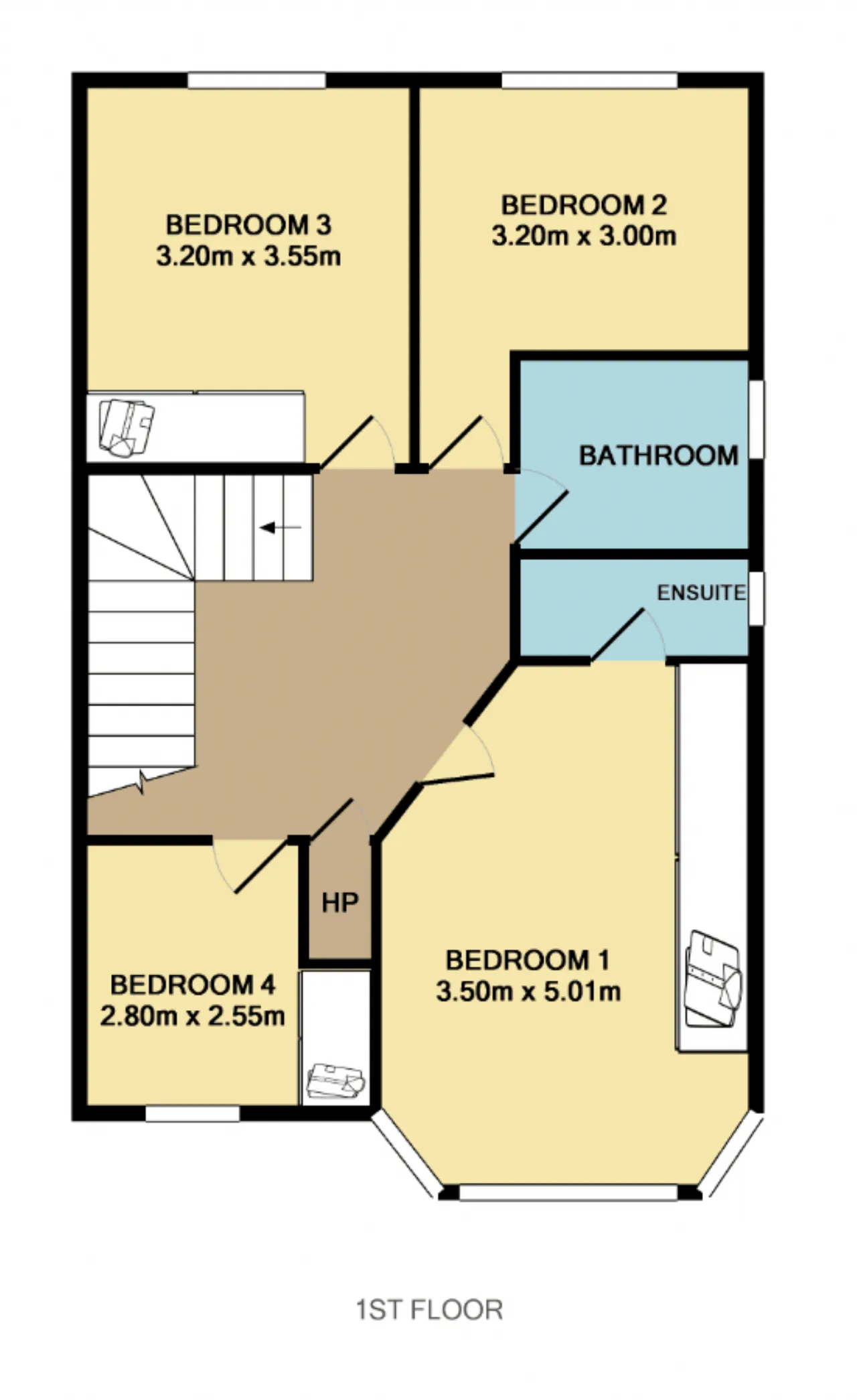 Bedroom 1 3.20m x 5.01m Double bedroom with built in wardrobes, feature bay window overlooking front and en-suite bathroom.