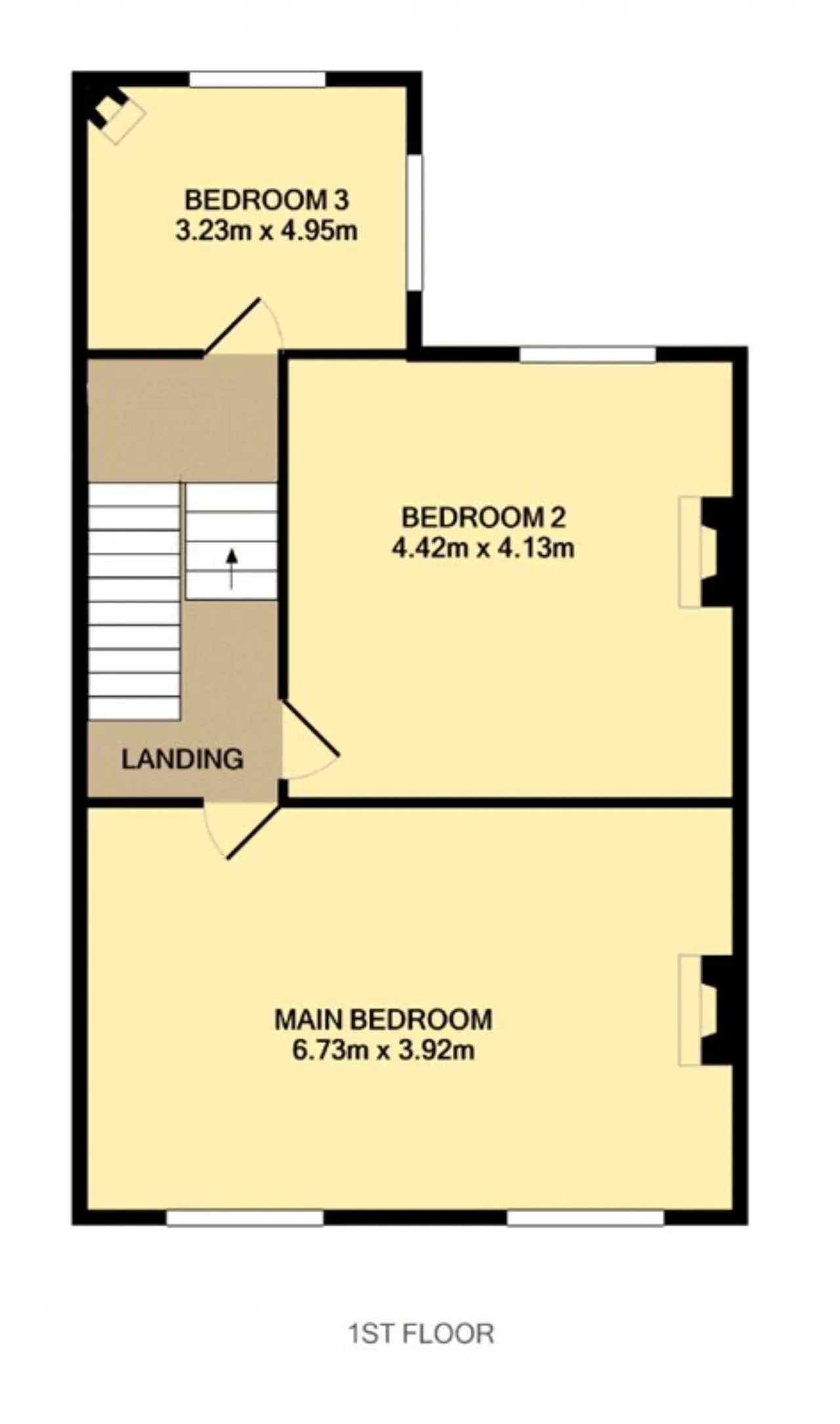 Bedroom 1 6.73m x 3.92m Spacious double room, spanning the width of the property with two windows overlooking front garden. Feature original fireplace. Ceiling coving, centre rose, shutters on windows and picture rail.