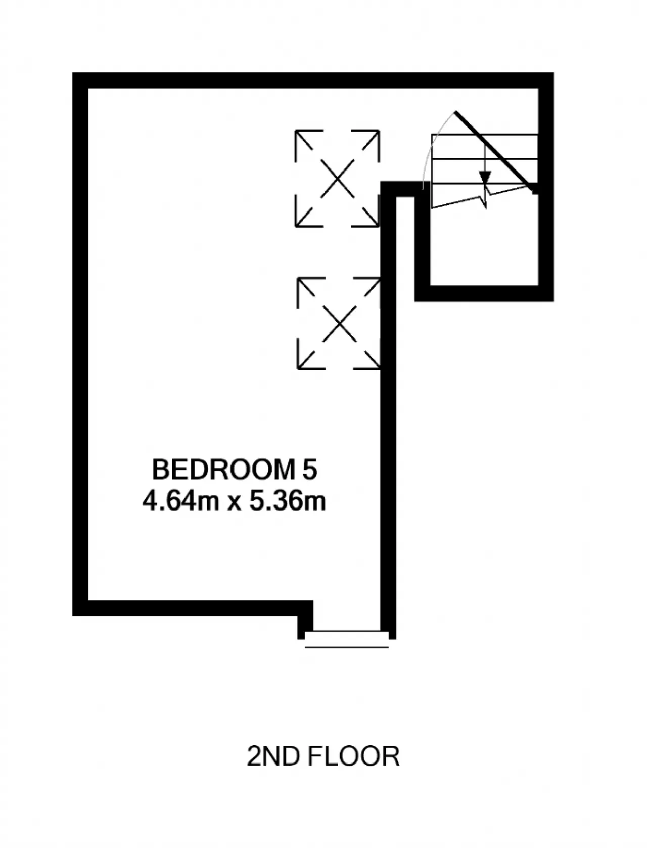 Bedroom 5 4.64m x 5.36m Polished timber floor, 2 velux rooflights, picture window overlooking Gonzaga, generous storage in eaves area.