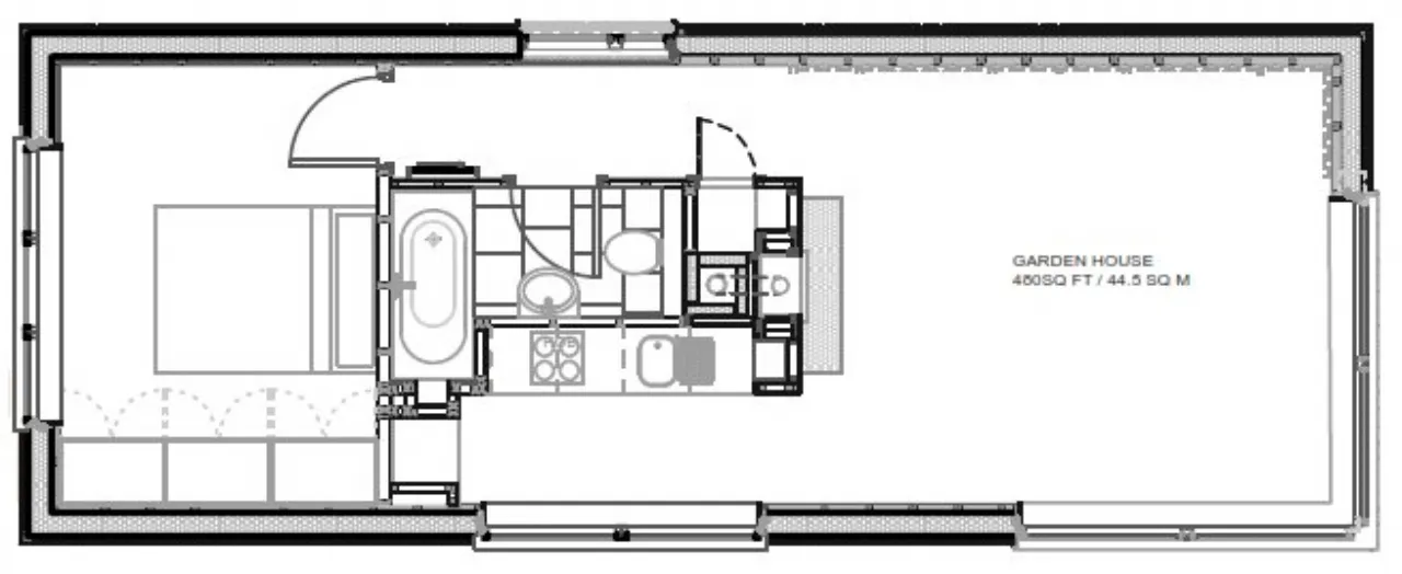 Garden House 480 sq ft/44.5 sq m Cedar-clad, slate pitched roof, tall glazed door to: