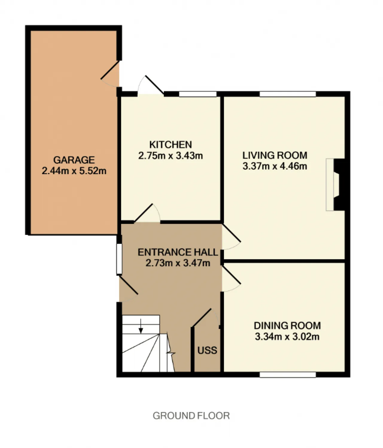 Garage 2.44m x 5.52m Ideal for converting into another room. It is currently used for storage and has a light and an up-and-over door to the front and a door leading to the rear garden.