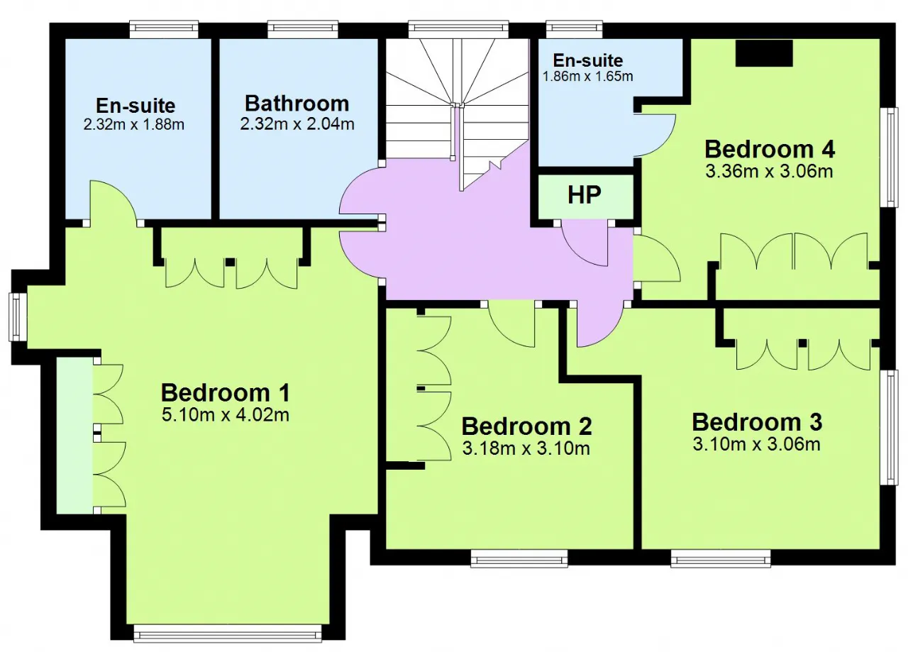 Bedroom 3 3.06m x 3.10m Double room with dual aspect, fitted wardrobes and shelving.
