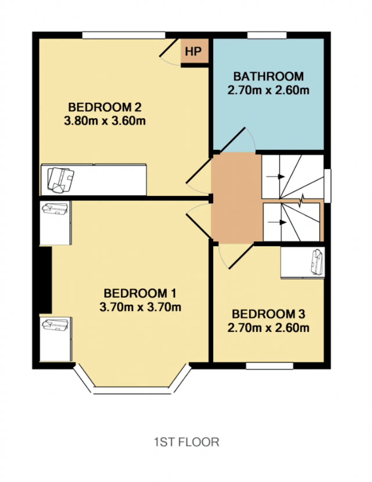 Bedroom 1 3.70m x 3.70m double room with fitted wardrobes, built in drawers, recessed lights and bay window.