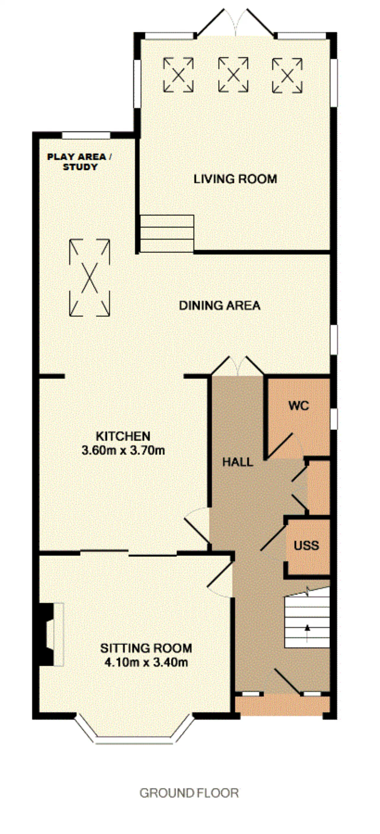 On entering the house through the original hall door with attractive stained glass, the quality of the accommodation that lies within is immediately evident. The light filled rooms which perfectly combines period elegance with contemporary design comprises entrance hall with guest wc and utility closet. There is also generous understairs storage. The sitting room to the front of the house has a beautiful marble fireplace with gas fire and a bay window overlooks the front garden. Sliding doors with stained glass lead to the modern kitchen with a bespoke range of wall and floor units featuring a range of high quality Neff integrated appliances and a breakfast bar. This is turn leads to the modern split level extension with a generous dining area, play / study area and steps down to a cosy living room overlooking the rear garden. Double doors lead to a private decked area which is ideal for ‘al fresco’ dining. Upstairs, there are three bedrooms with built-in wardrobes and a luxuriously appointed bathroom. The attic has also been converted into a large room with generous eaves storage and two large Velux roof lights flood the room with natural light.